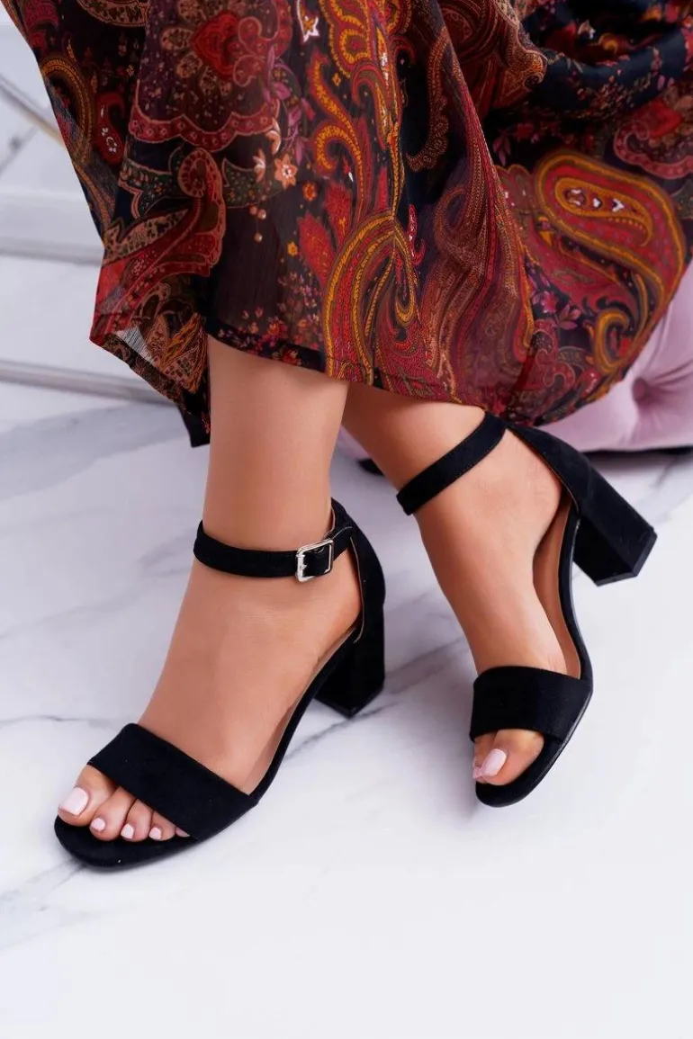 Czarne Damskie Sandały Na Słupku Zamsz NewGenua