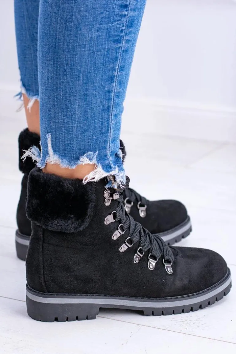 Czarne Damskie Traperki Z Futerkiem Timberki Vices K2
