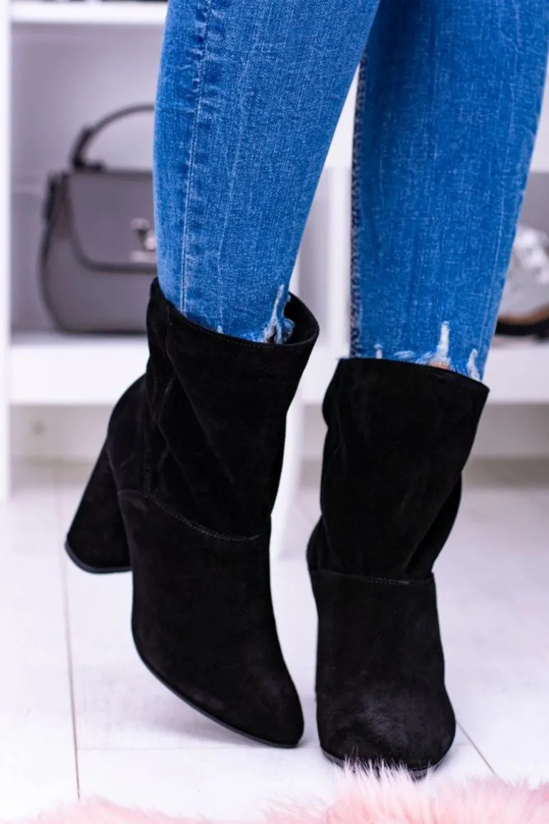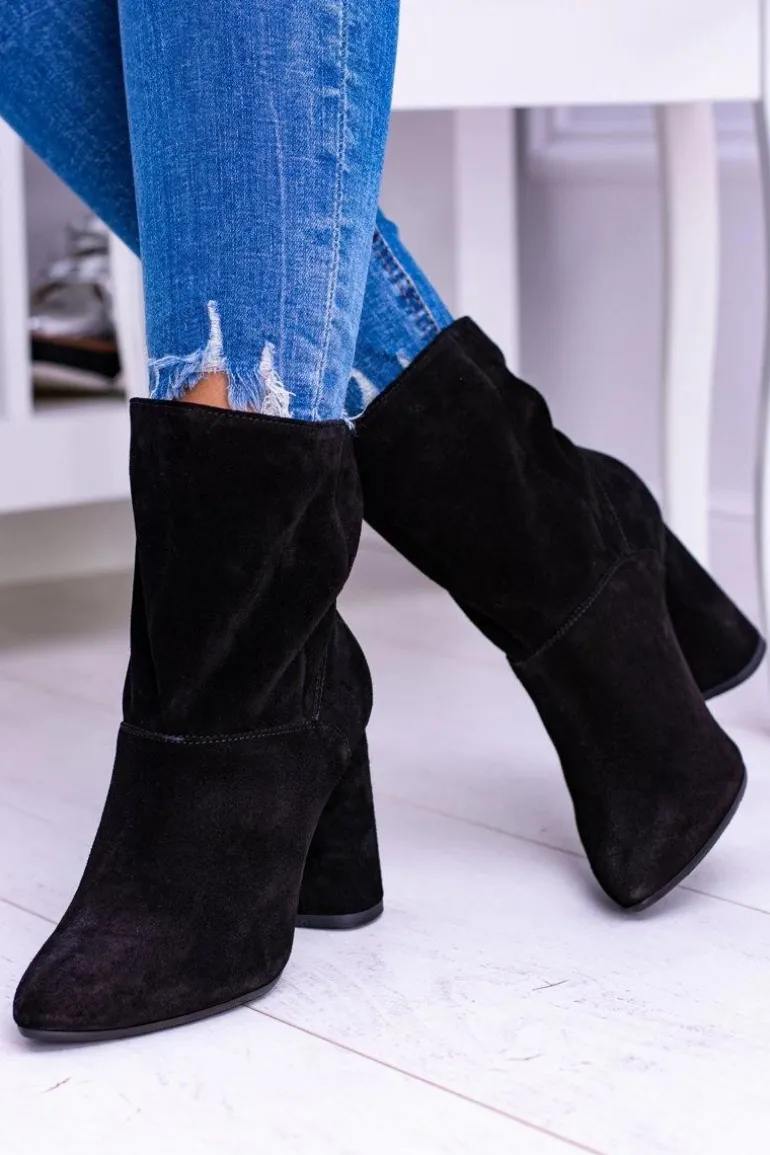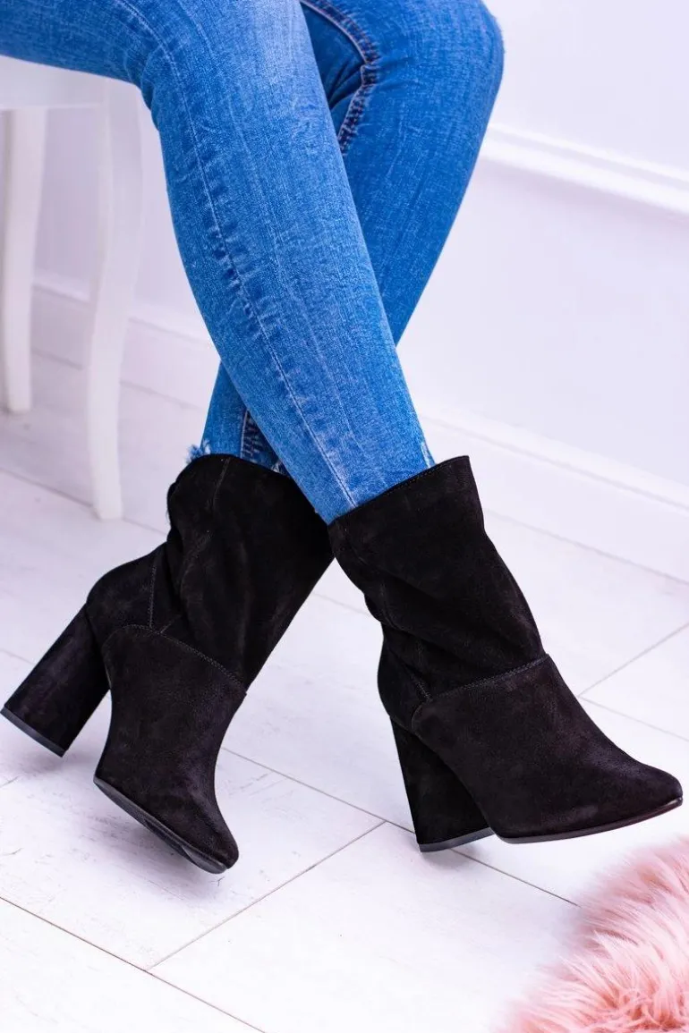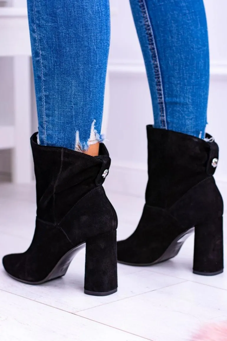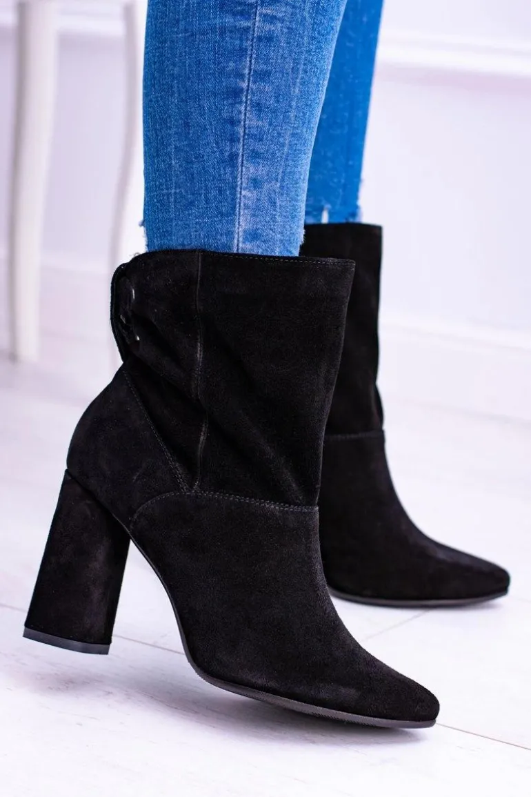 Czarne Wysokie Zamszowe Botki na Słupku Laura Messi 1857