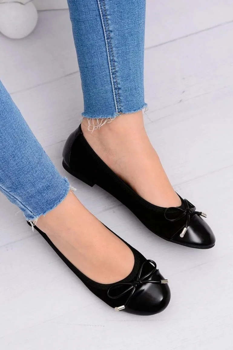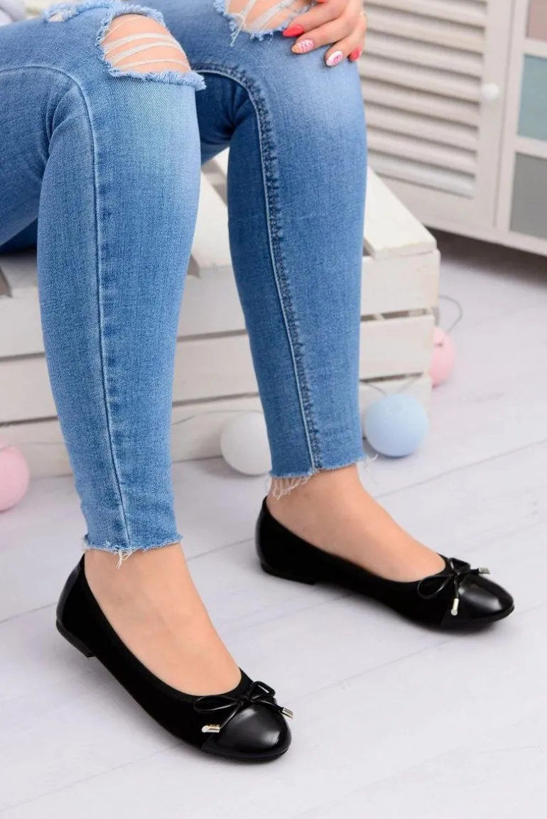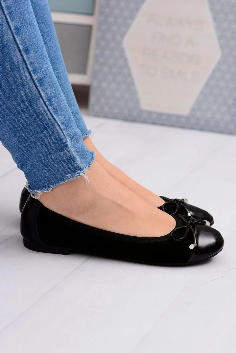 Czarne Zamszowe Balerinki Z Kokardką Mobi