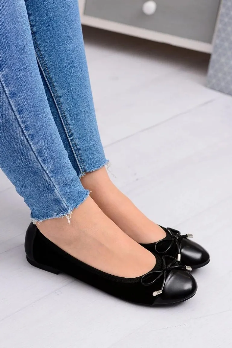 Jedne z najmodniejszych balerinek tego sezonu. Jeśli podążasz za najnowszymi trendami mody i cenisz sobie komfort użytkowania, to dobrze trafiłaś! Starannie wykonane z dbałością o każdy detal. Cudowne lakierowane wstawki na zapiętku i nosku wraz z delikatną kokardką sprawiają że są najbardziej rozchwytywanym modelem! Dopasowanie do stopy zapewni wszyta dookoła gumka. Nie czekaj, może braknąć! 🙂