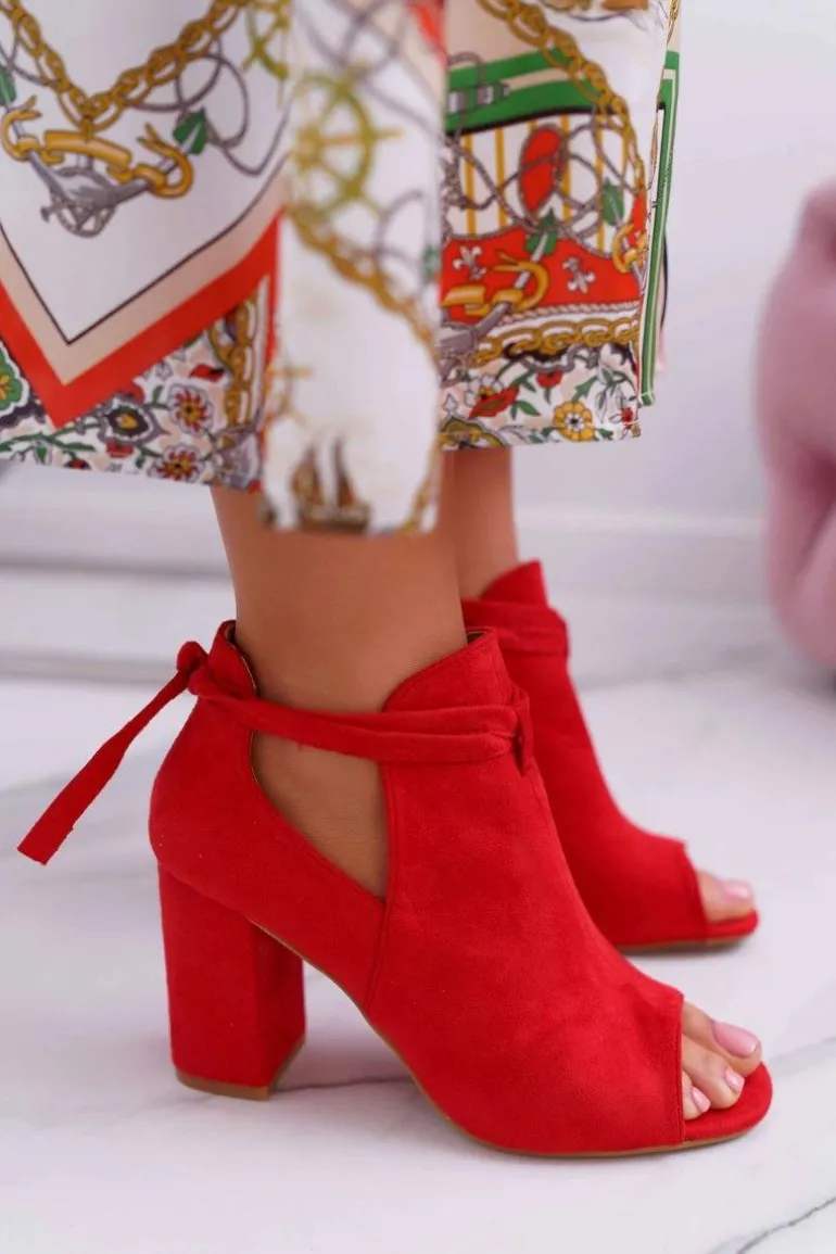 Czerwone Botki Sandały Na Słupku Odkryte Palce Grays