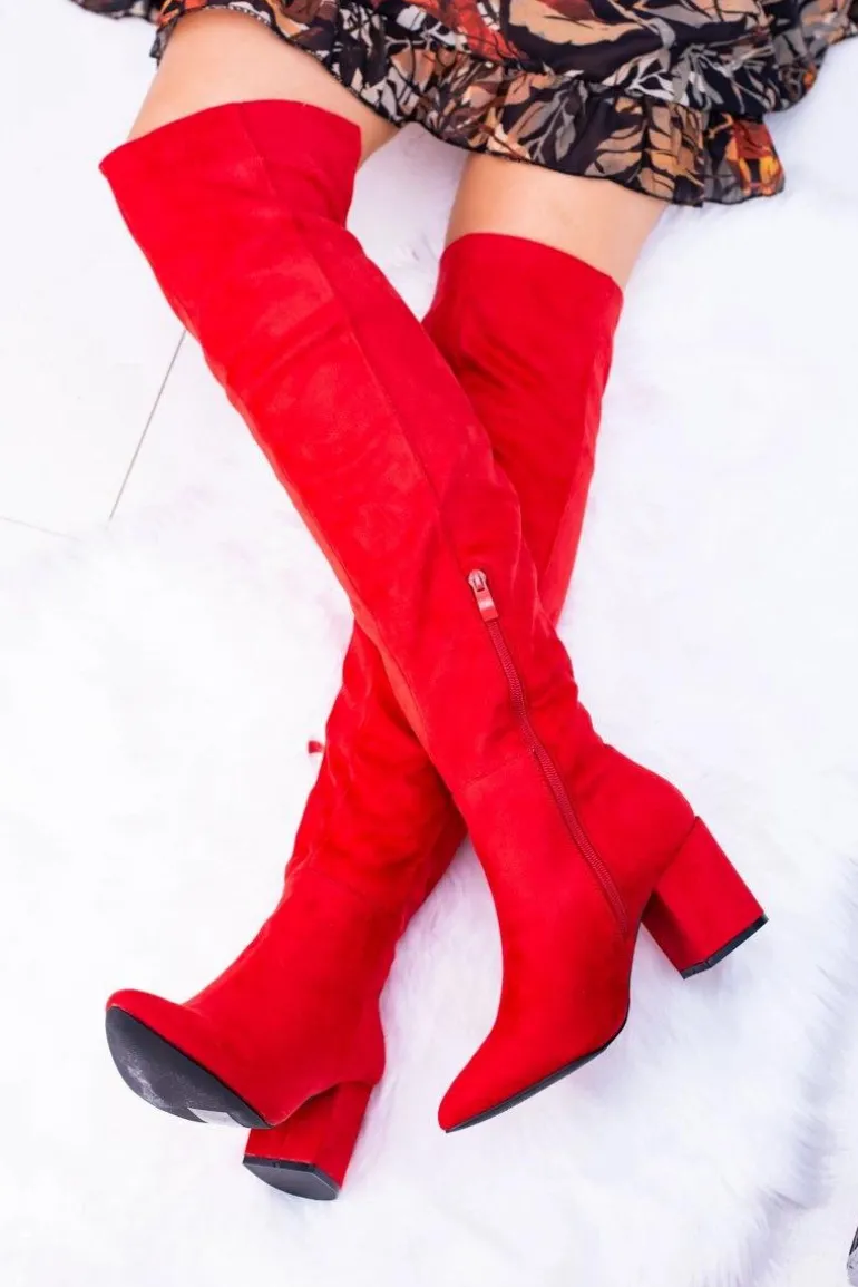 Czerwone Damskie Kozaki Zamszowe Za Kolano Feluni