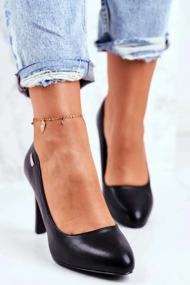 Czółenka damskie Czarne Matowe Sergio Leone Na Słupku Campbell
