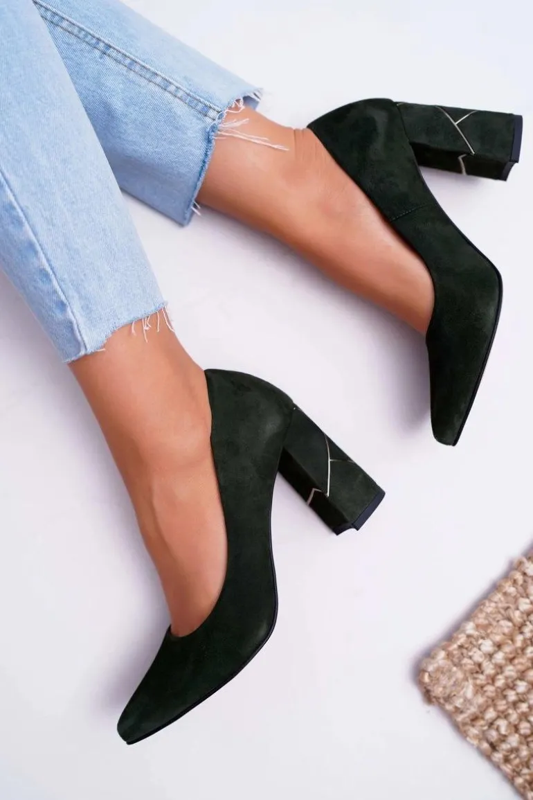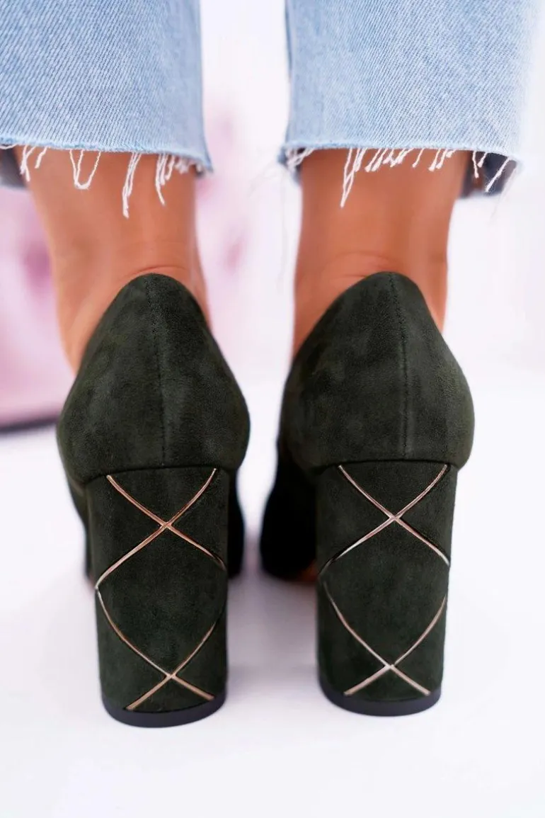 Czółenka Damskie Laura Messi Zamszowe Oliwkowe 2050