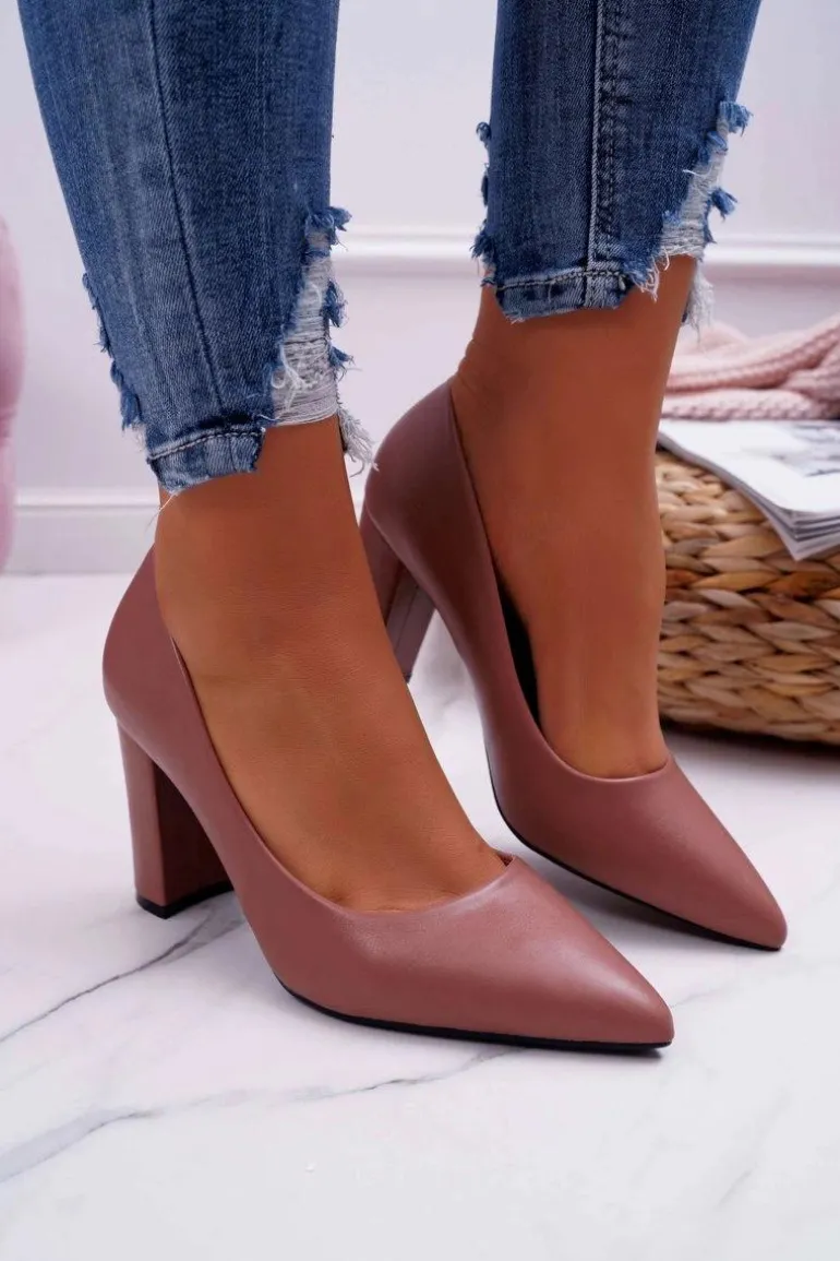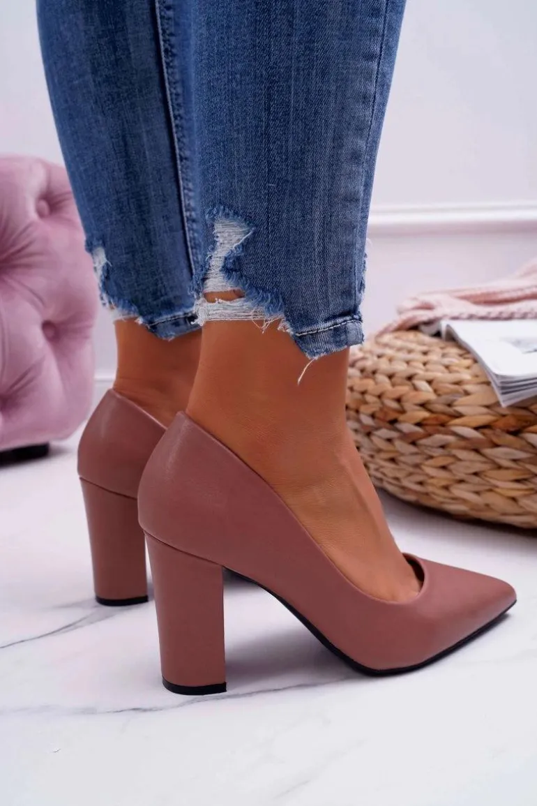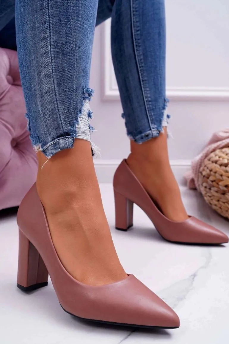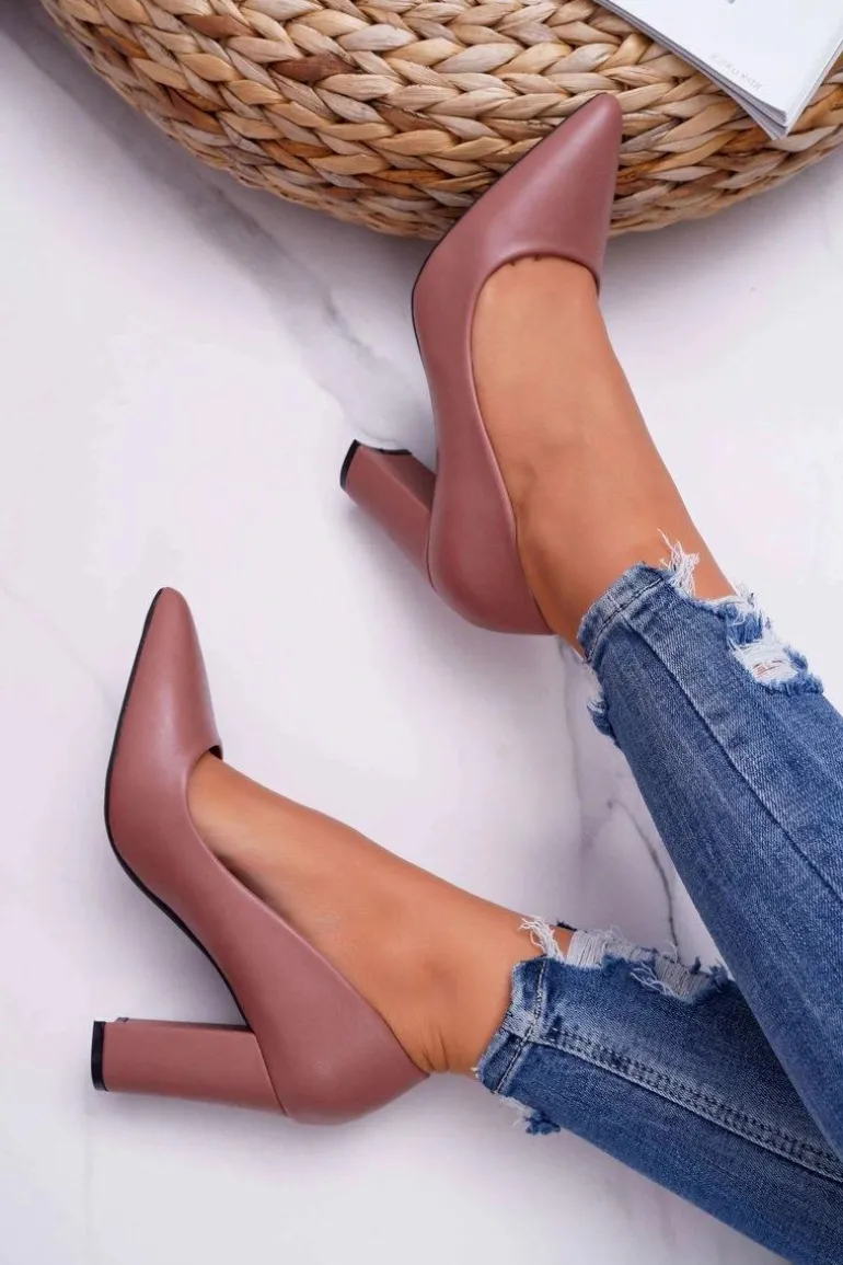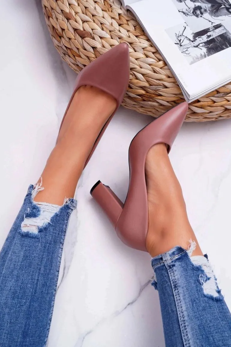 Czółenka Damskie Na Słupku Ciemny Róż Femmini