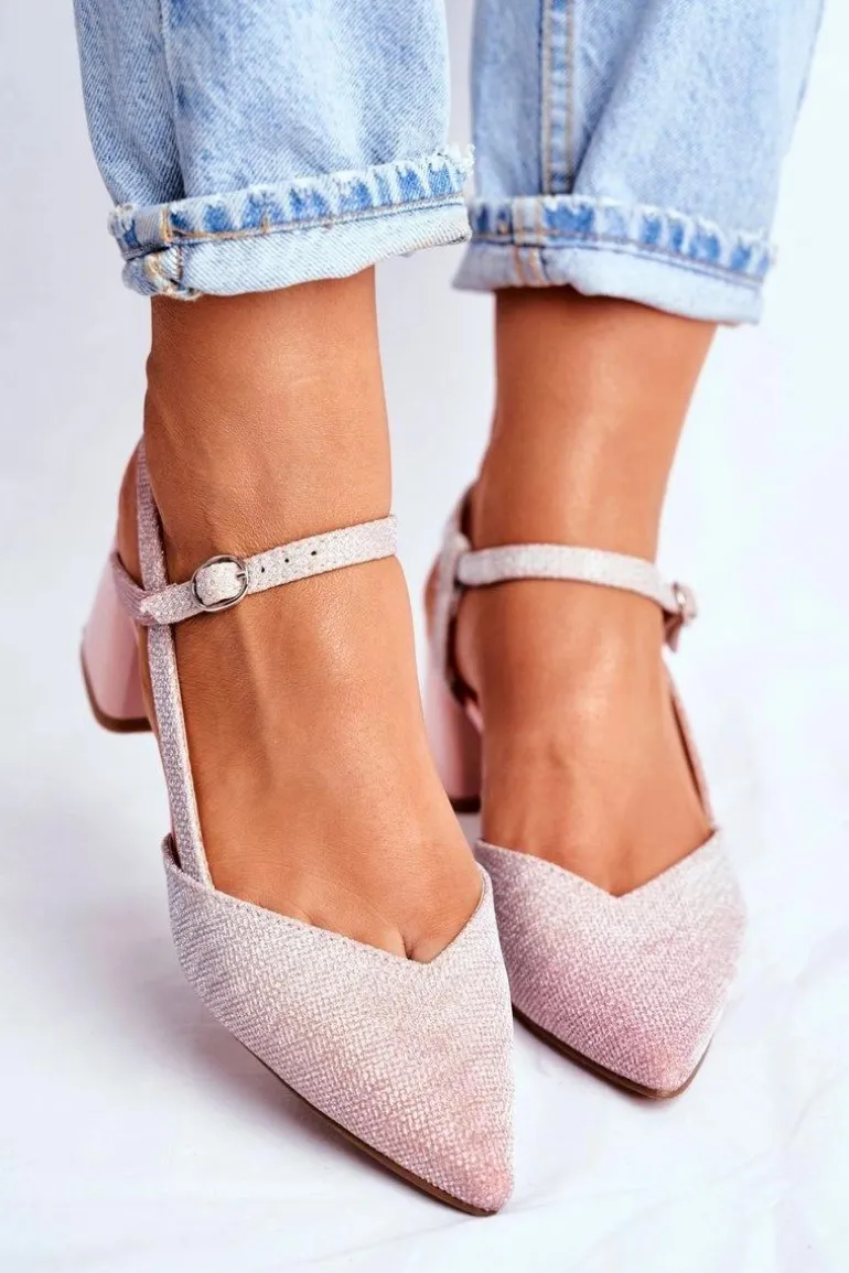 Czółenka Damskie Na Słupku Różowe Złoto Alice