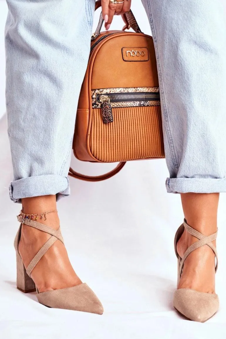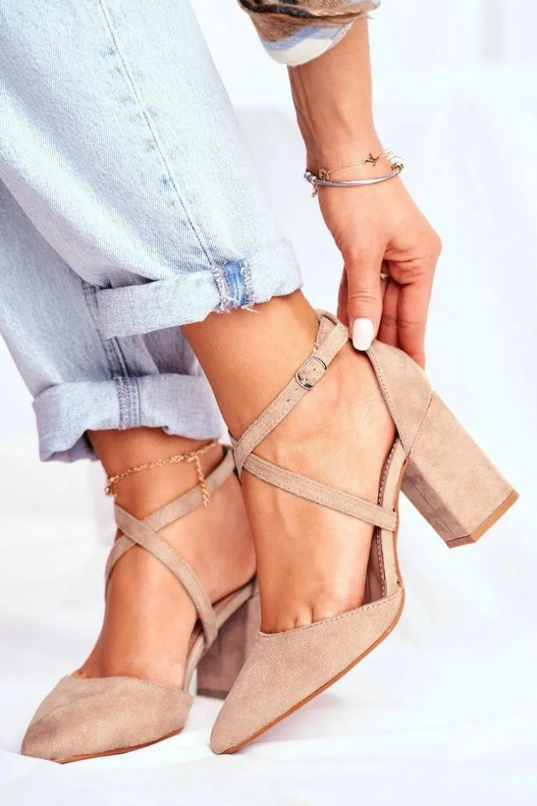 Czółenka Damskie Na Słupku W Szpic Beżowe Traffic