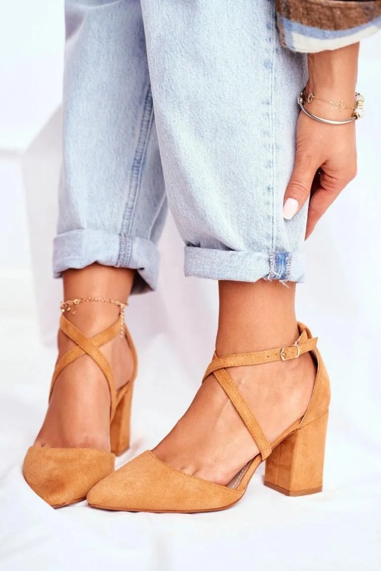 Czółenka Damskie Na Słupku W Szpic Camel Traffic