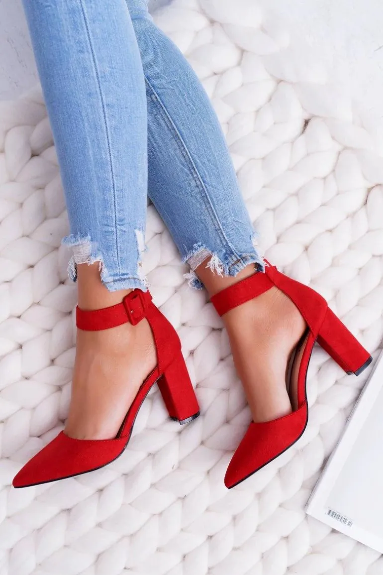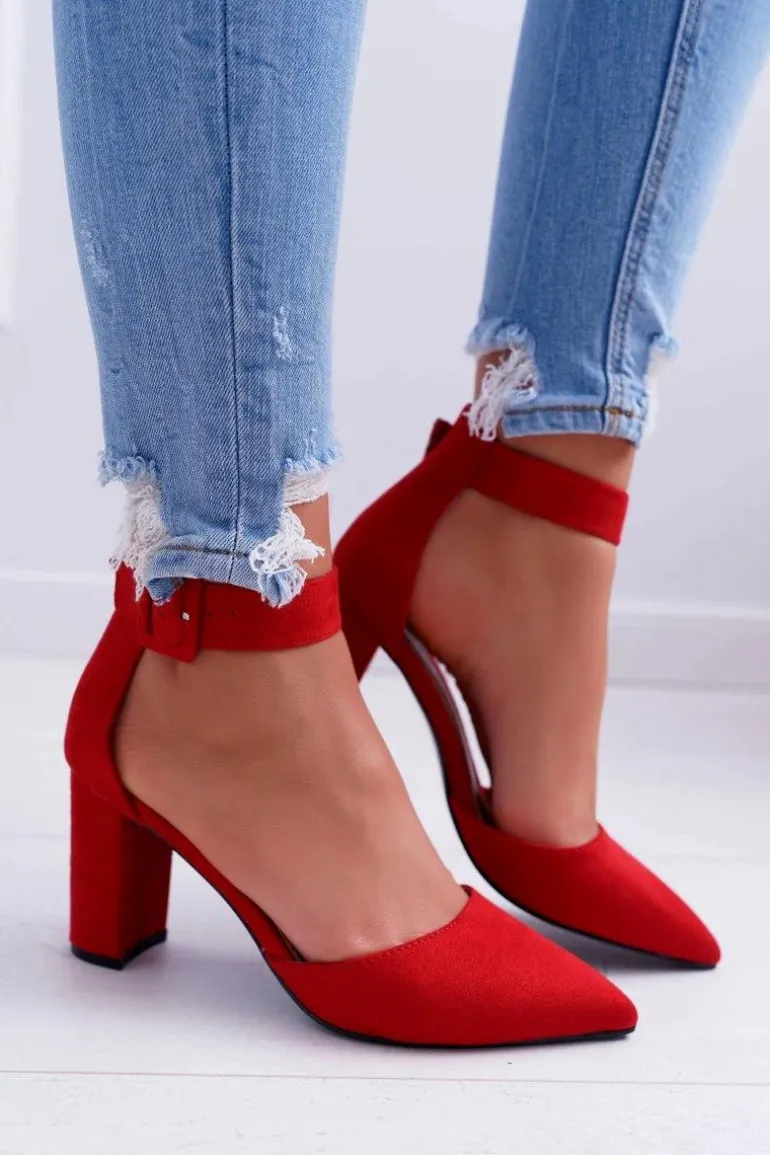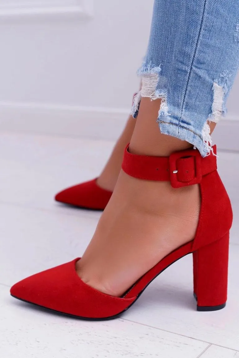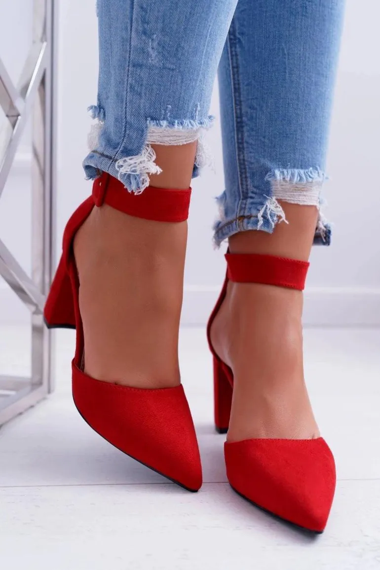 Czółenka Damskie Na Słupku W Szpic Czerwone Domine