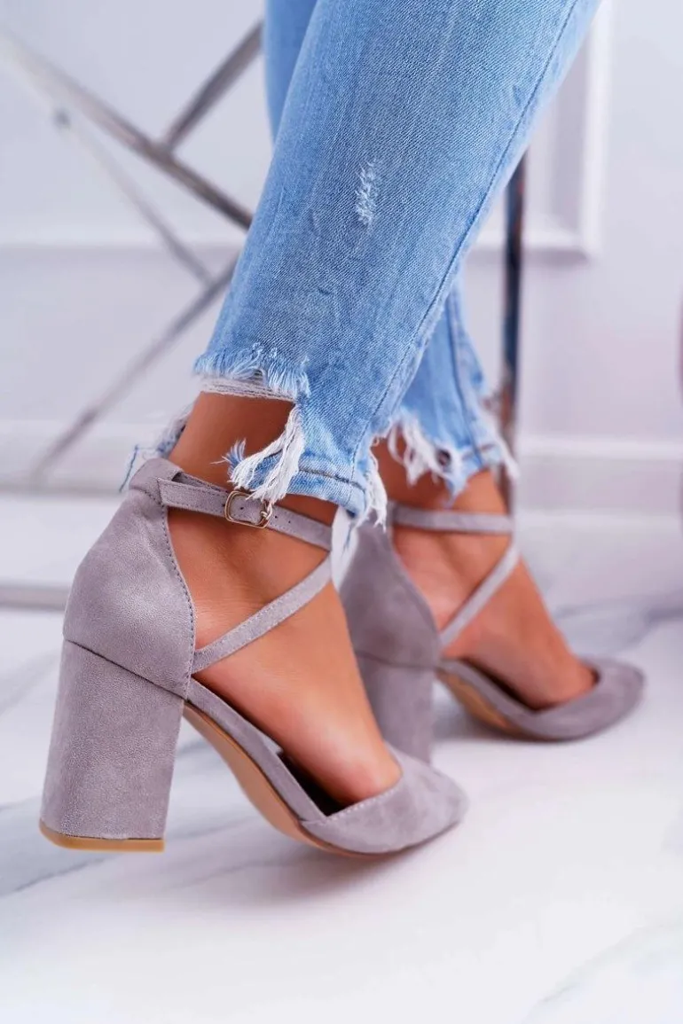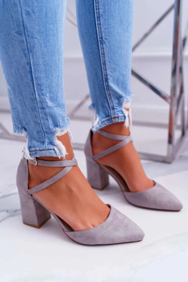 Czółenka Damskie Na Słupku W Szpic Szary Cosmo