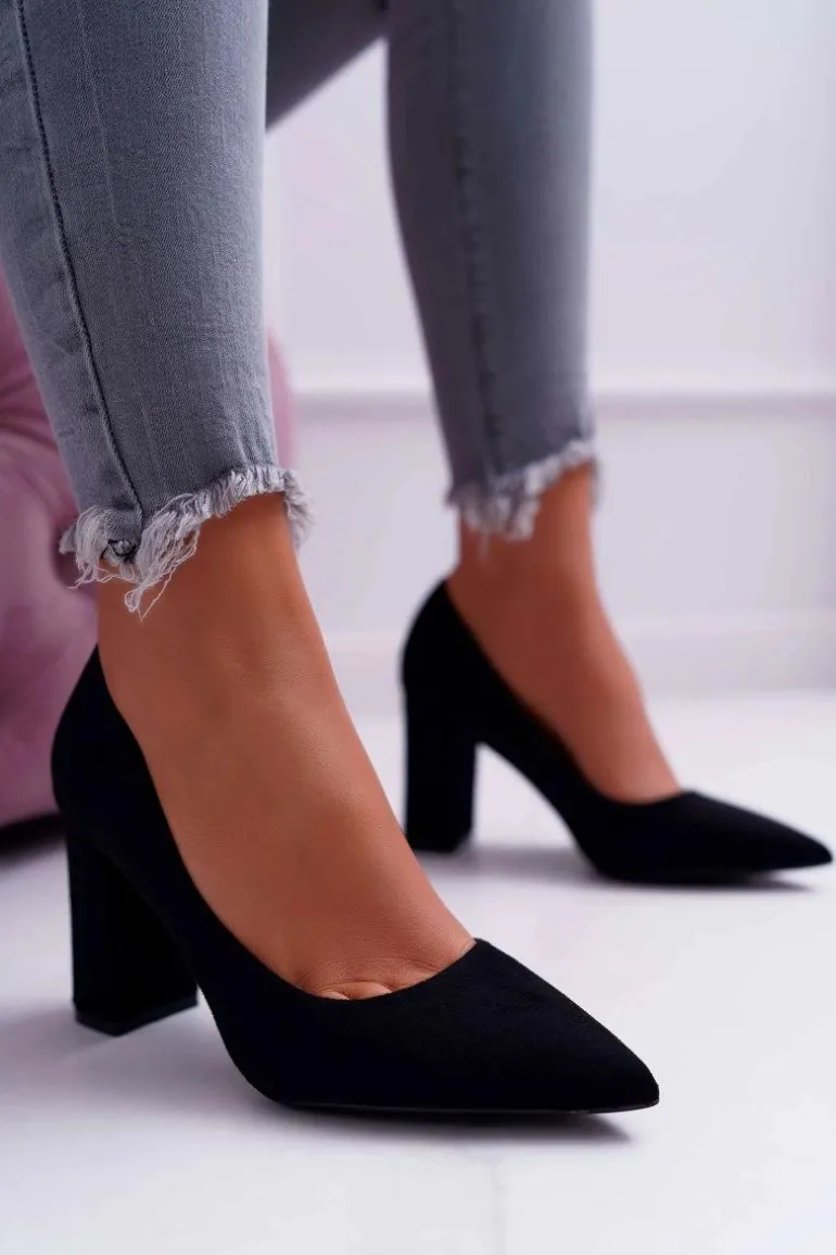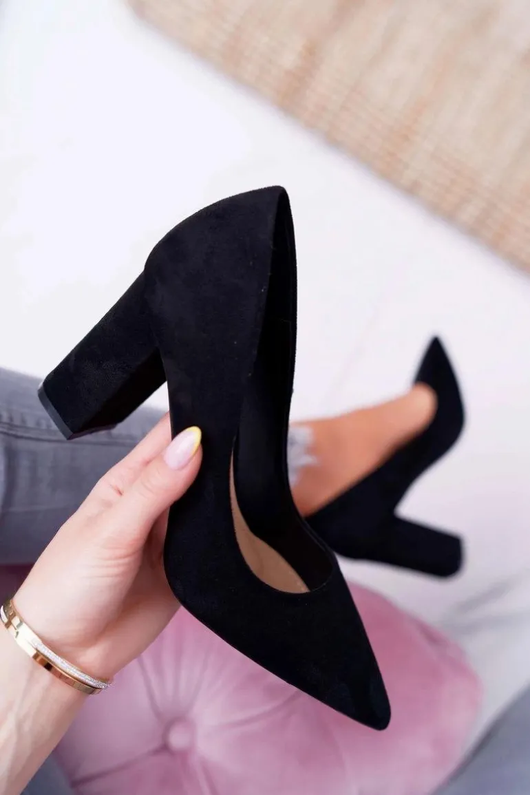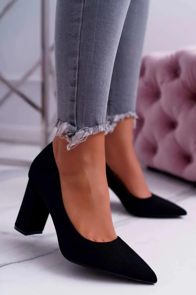 Czółenka Damskie Na Słupku Zamszowe Czarne Clarina