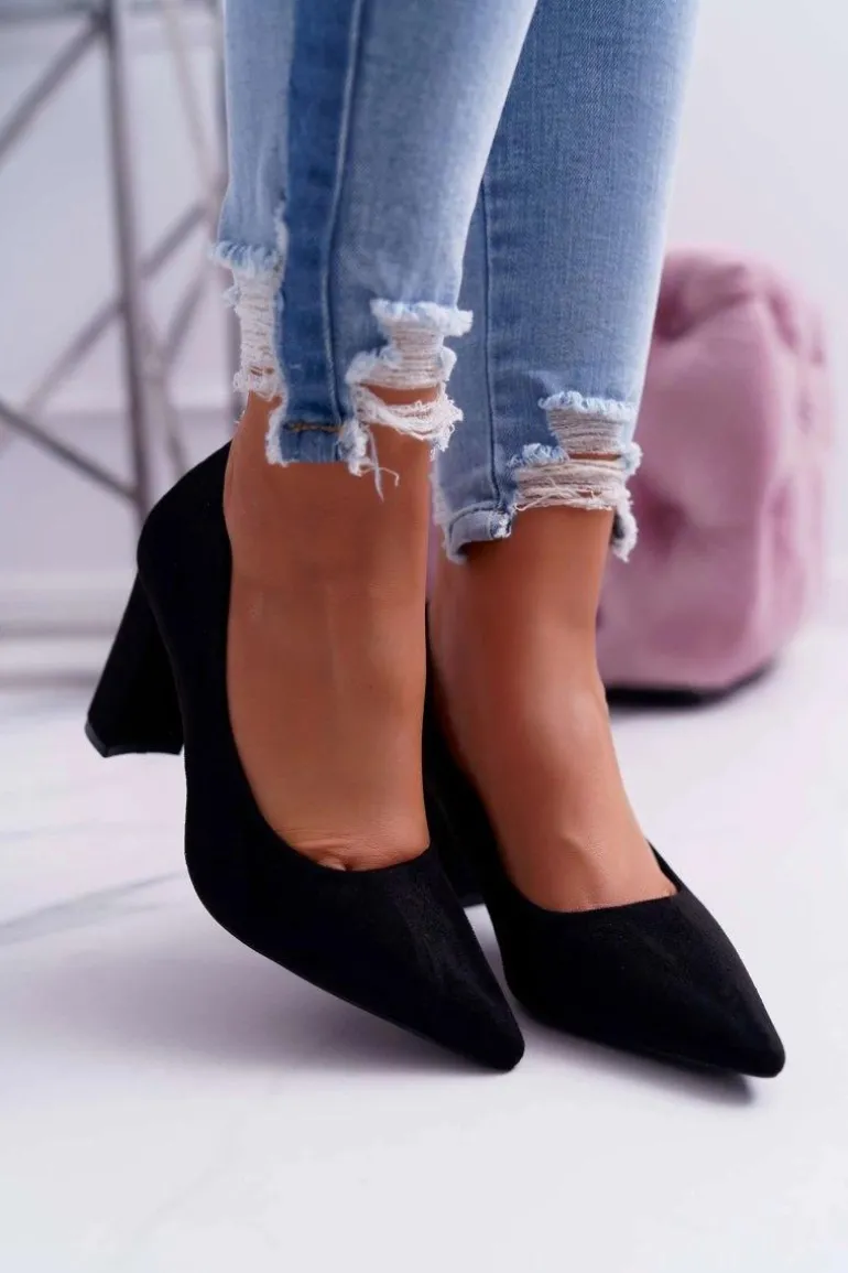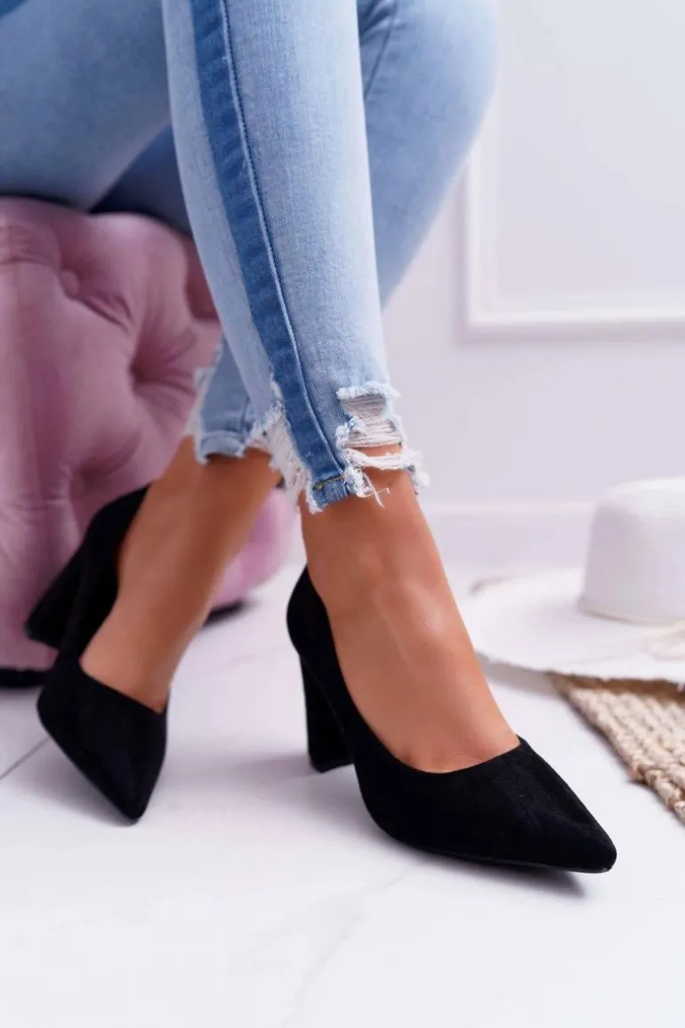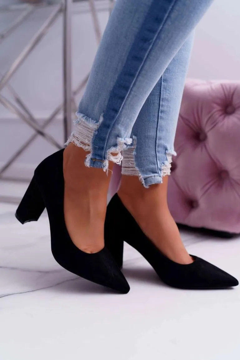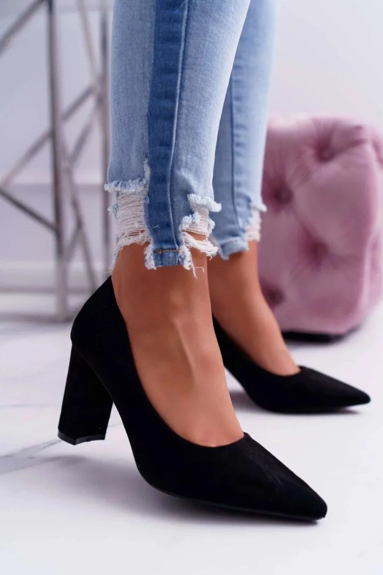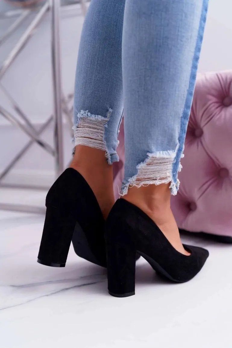 Czółenka Damskie Na Słupku Zamszowe Czarne Eriela