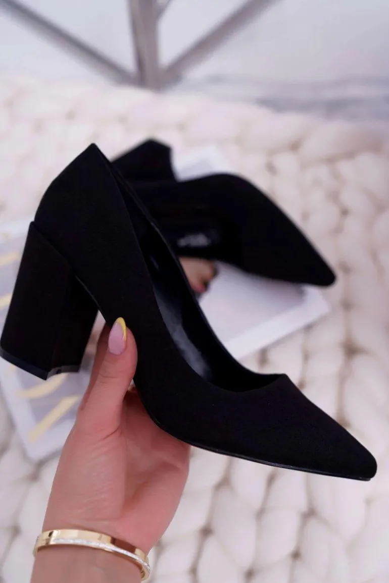 Czółenka Damskie Na Słupku Zamszowe Czarne Neshka