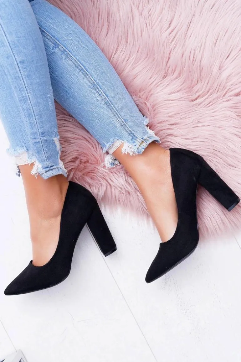 Czółenka Damskie Na Słupku Zamszowe Czarne Strawberry