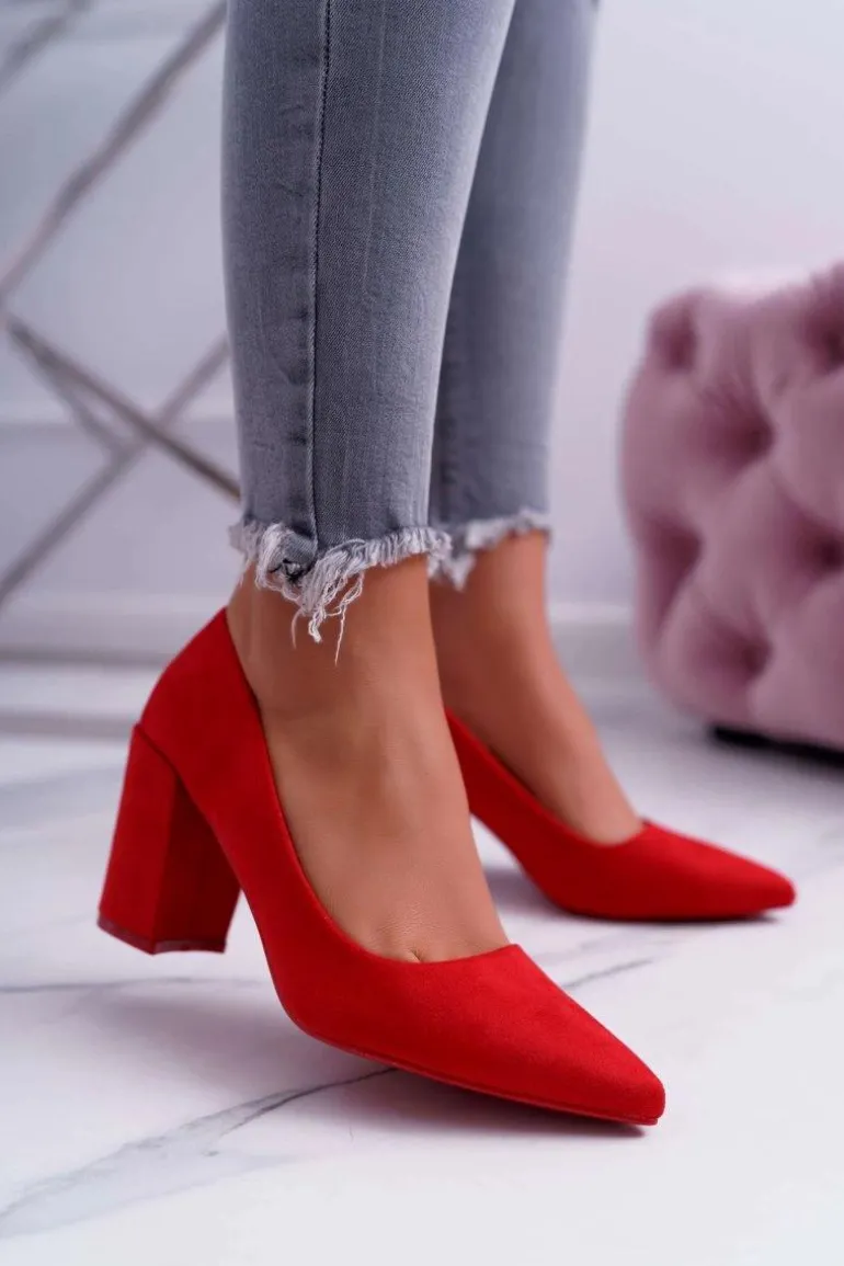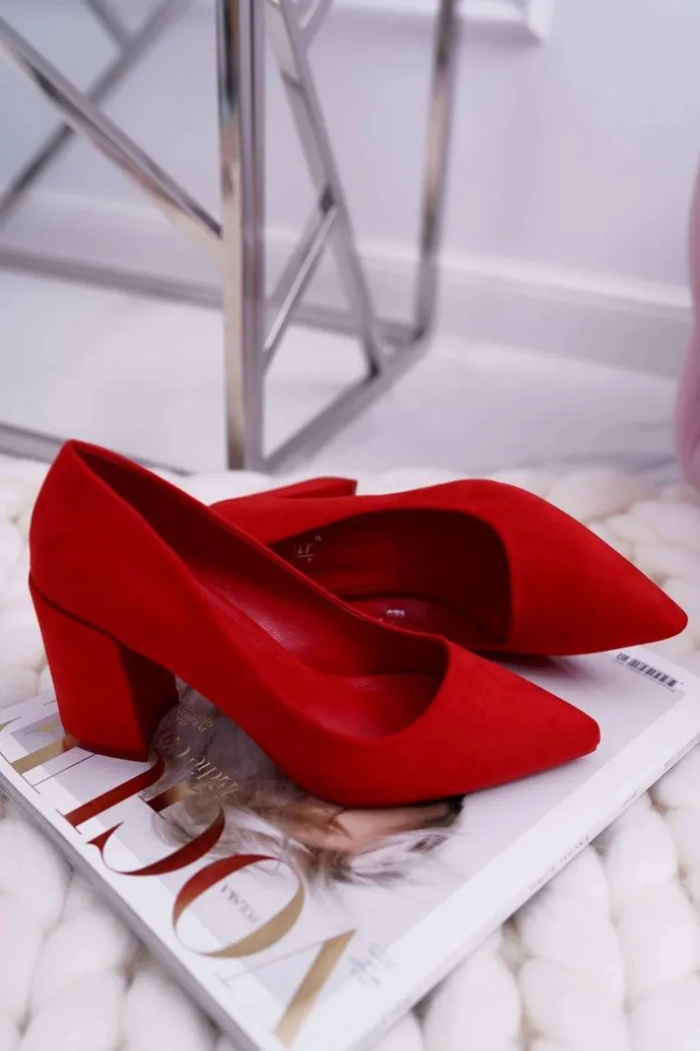 Czółenka Damskie Na Słupku Zamszowe Czerwone Neshka