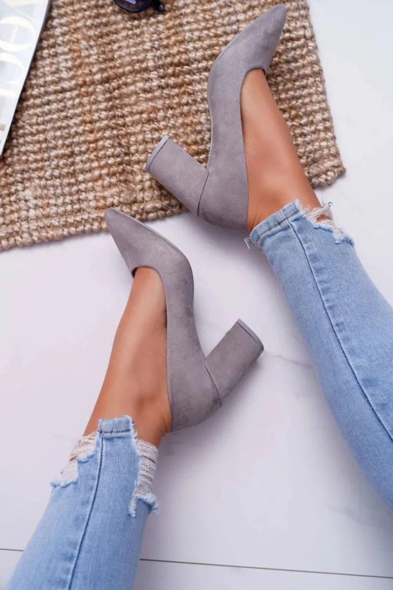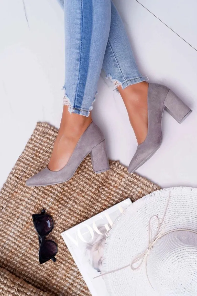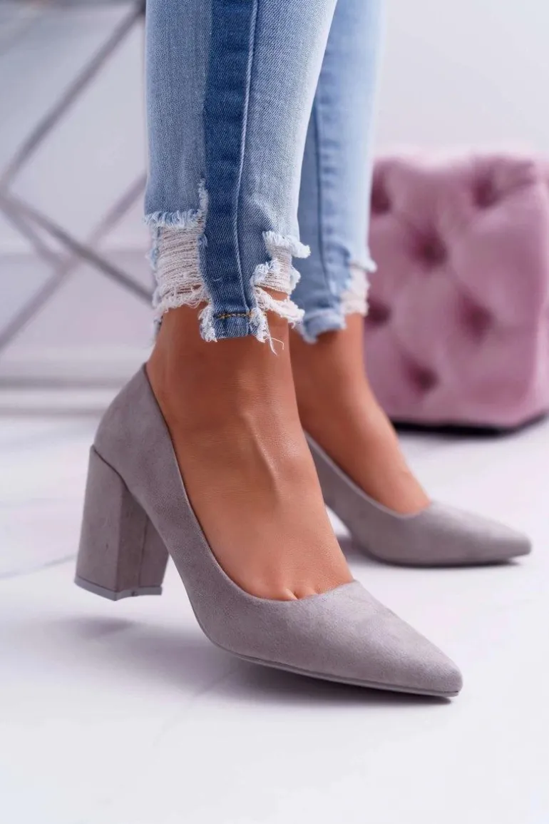 Czółenka Damskie Na Słupku Zamszowe Szare Neshka