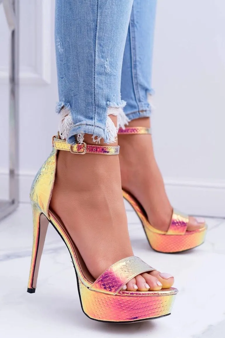 Czółenka Damskie Na Szpilce Platformie Benzynowe Złote ShakeIt