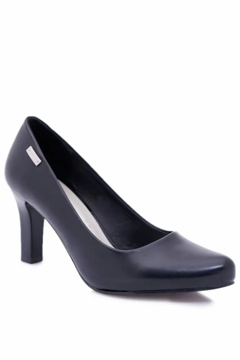 Eleganckie czółenka damskie na słupku to idealne połączenie stylu i wygody. Wykonane z wysokiej jakości skóry ekologicznej, zapewniają trwałość oraz elegancki wygląd. Stabilny obcas dodaje kilku centymetrów wzrostu, jednocześnie gwarantując komfort noszenia przez cały dzień. Klasyczny design sprawia, że te czółenka doskonale sprawdzą się zarówno w biurze, jak i na wieczorne wyjścia, dodając każdej stylizacji wyrafinowanego charakteru.Przy wyborze rozmiaru prosimy sugerować się tabelą rozmiarów.