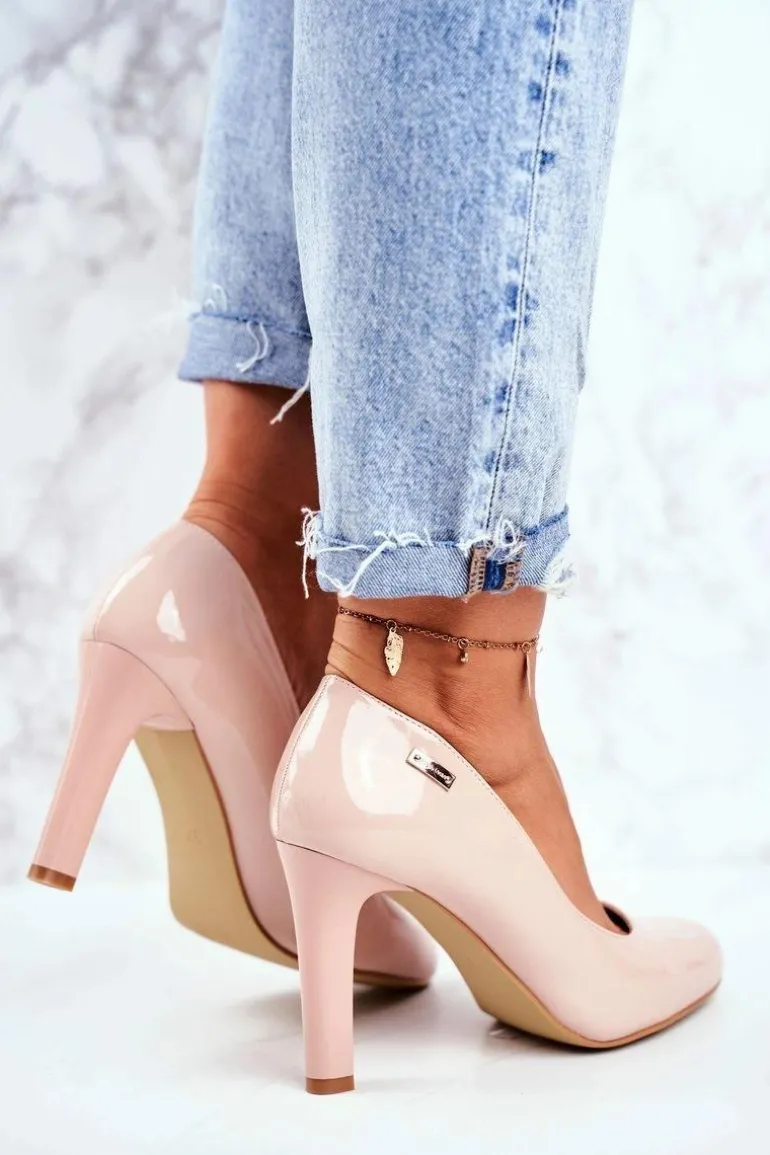 Czółenka Damskie Sergio Leone Lakierowane Na Słupku Beżowe Campbell