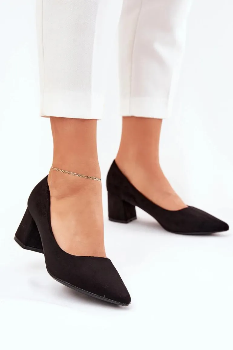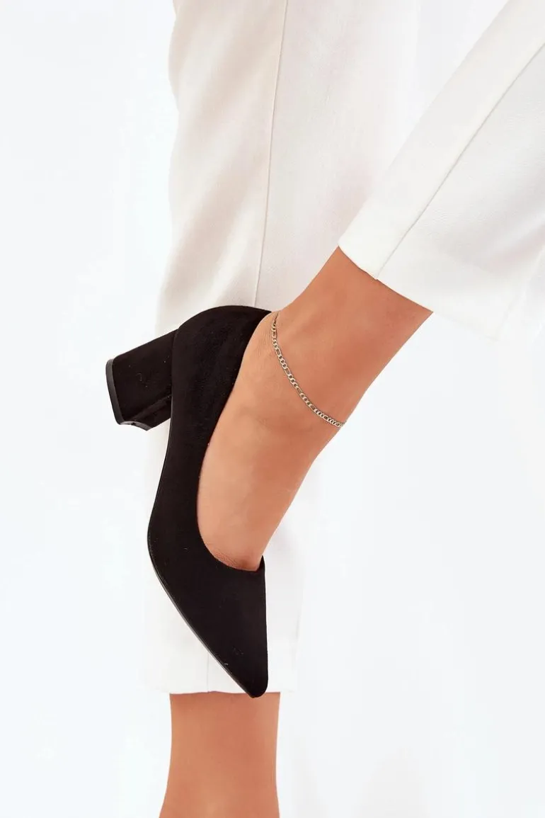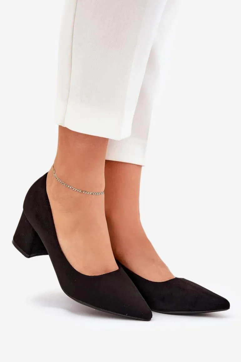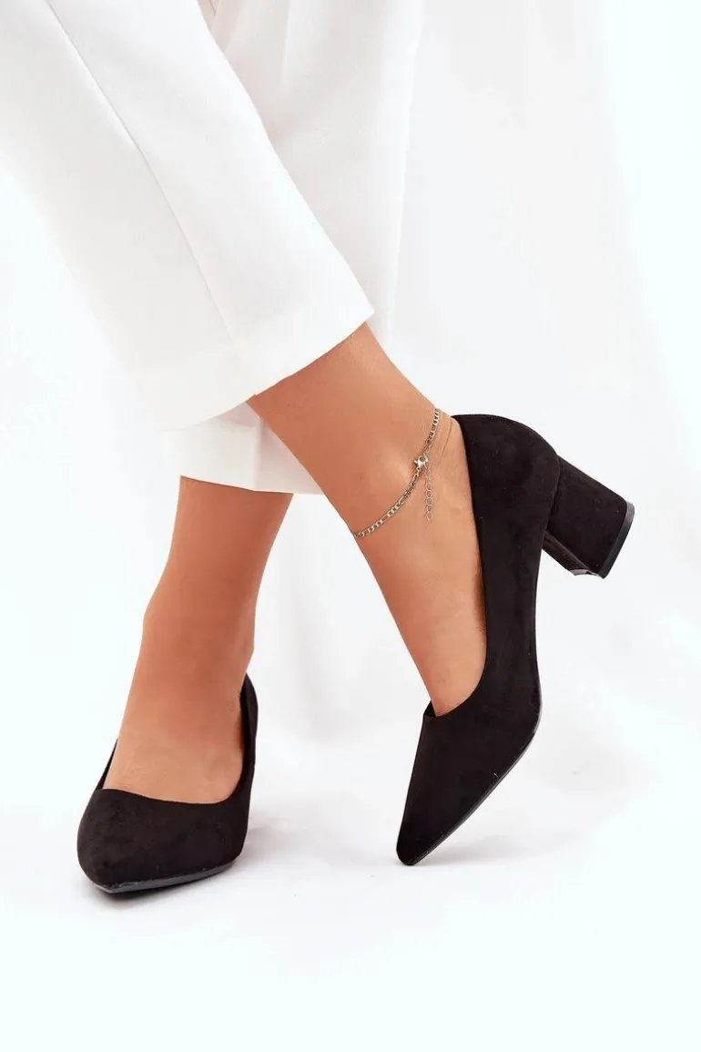 Czółenka Damskie Ze Szpiczastymi Noskami Na Słupku Czarne Merinette