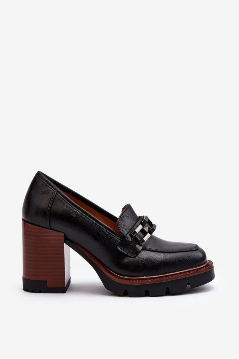 Czółenka Na Masywnym Słupku Z Ozdobą Czarne Oradna