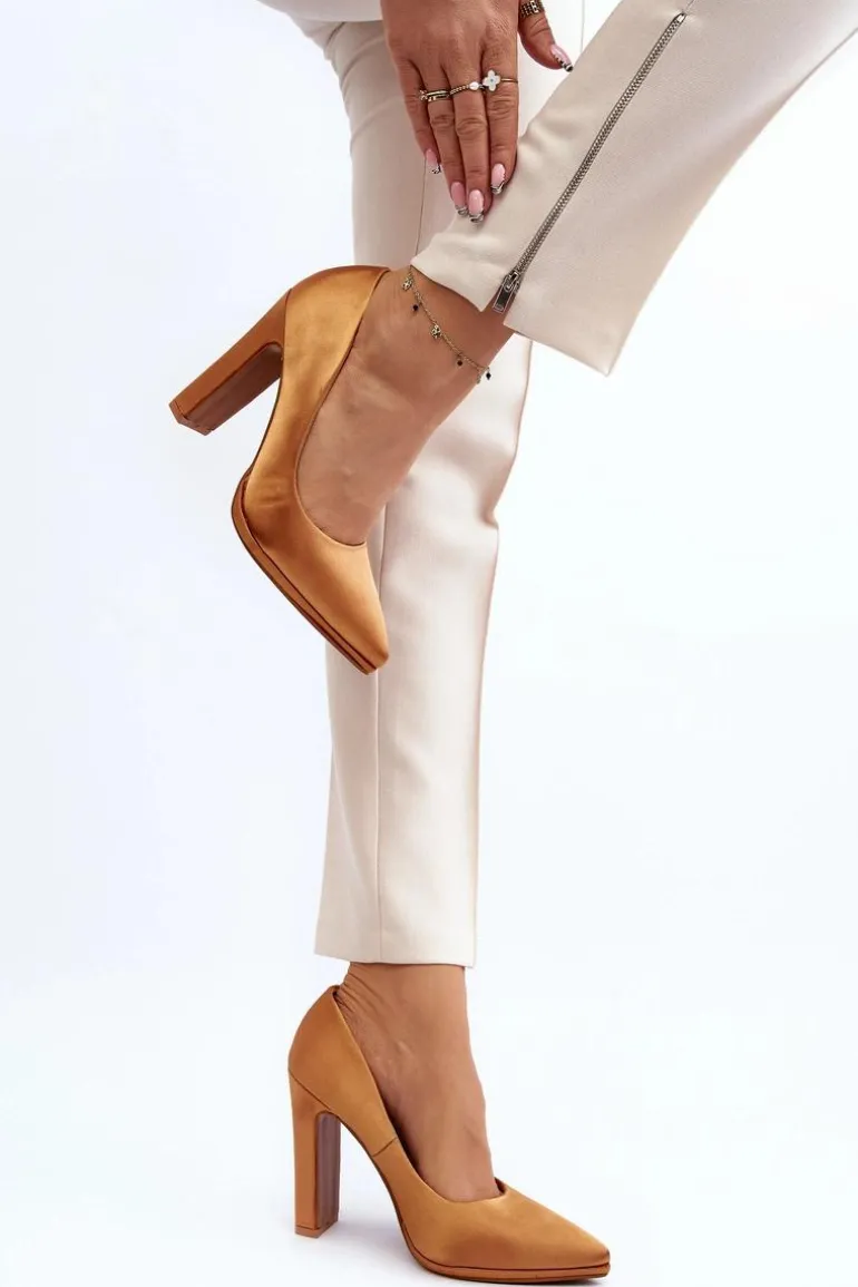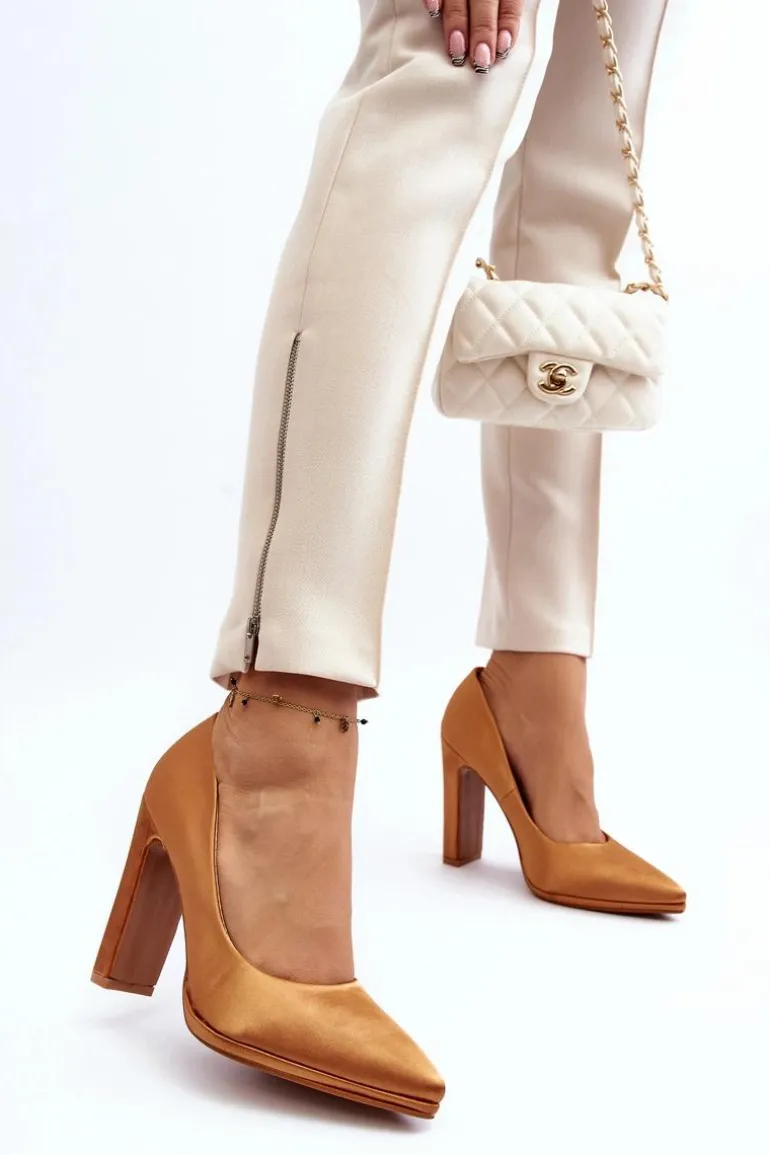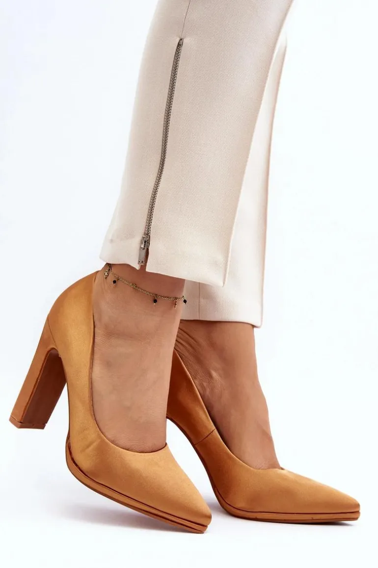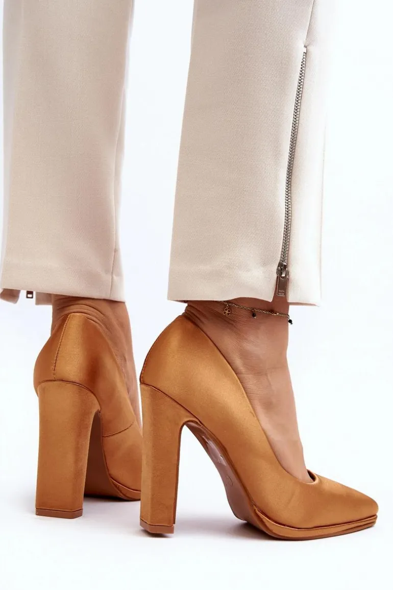 Modne czółenka na obcasie w postaci słupka, z pewnością przypadną do gustu kobietom kochającym wysokie obcasy! Wykonane z materiału tekstylnego imitującego satynę. Miękka wkładka z eko skóry zapewni wygodę podczas użytkowania. Idealne na wieczorne wyjścia! Przy wyborze rozmiaru prosimy kierować się tabelą rozmiarów