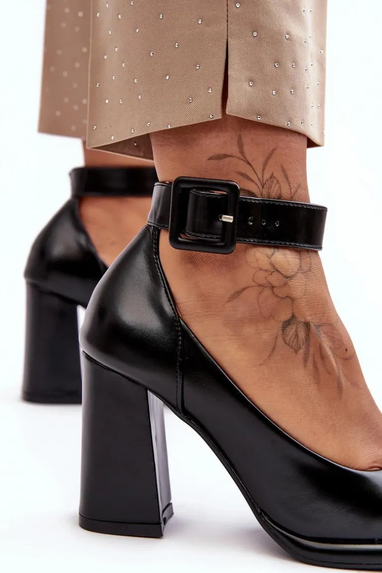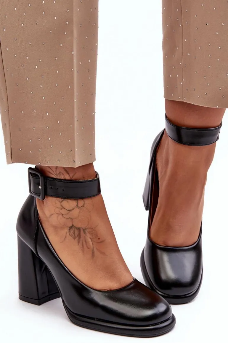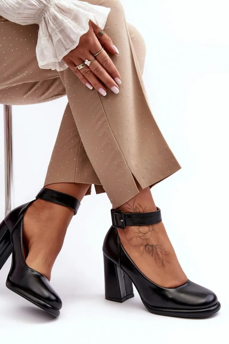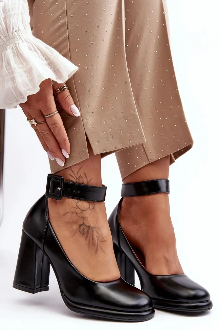 Czółenka Na Słupku Z Klamrą Czarne Idovana