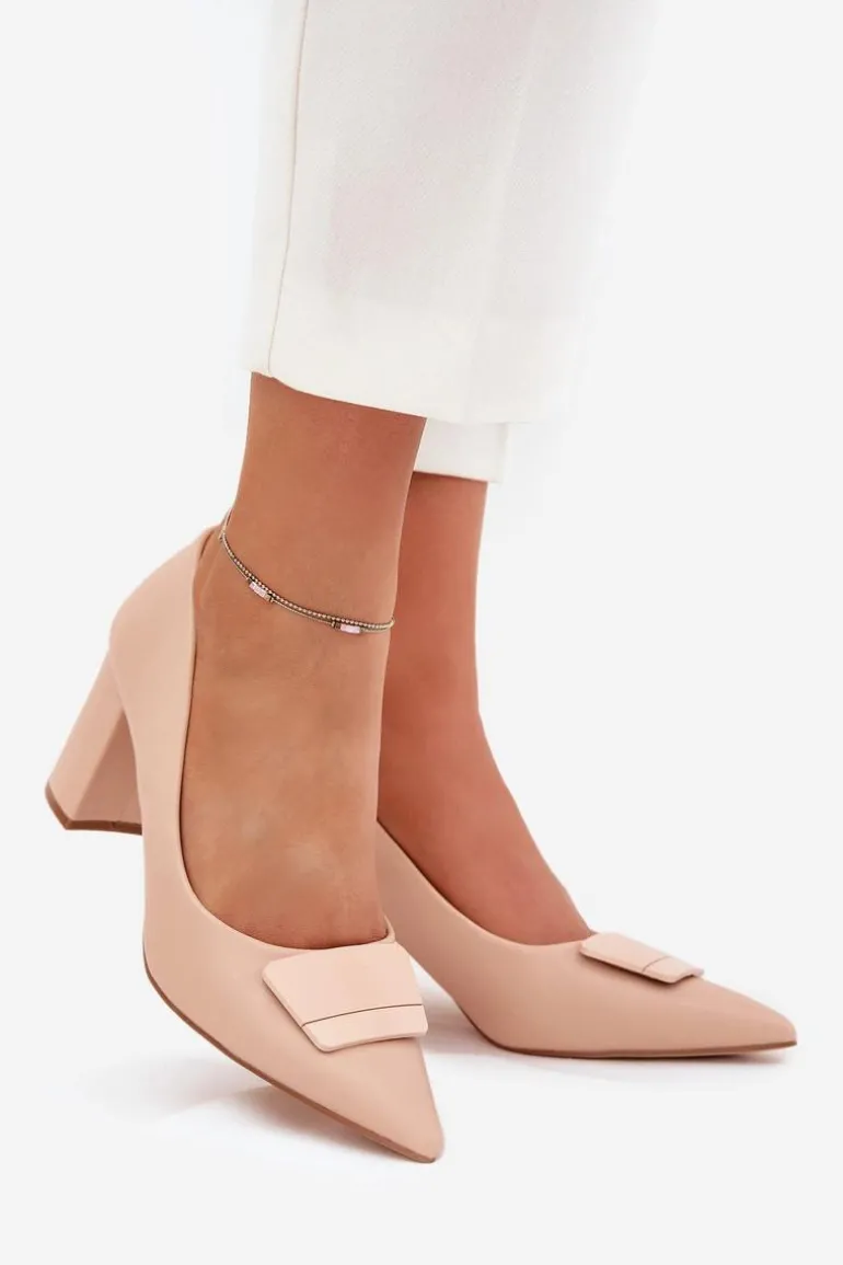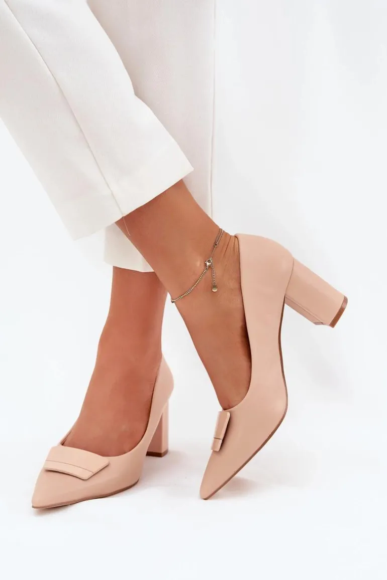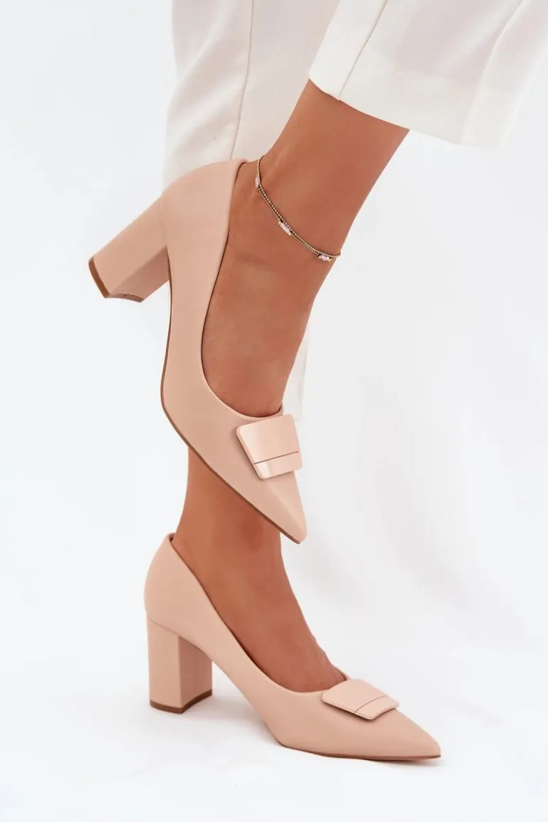Czółenka Na Słupku Z Ozdobą Beżowe Celira