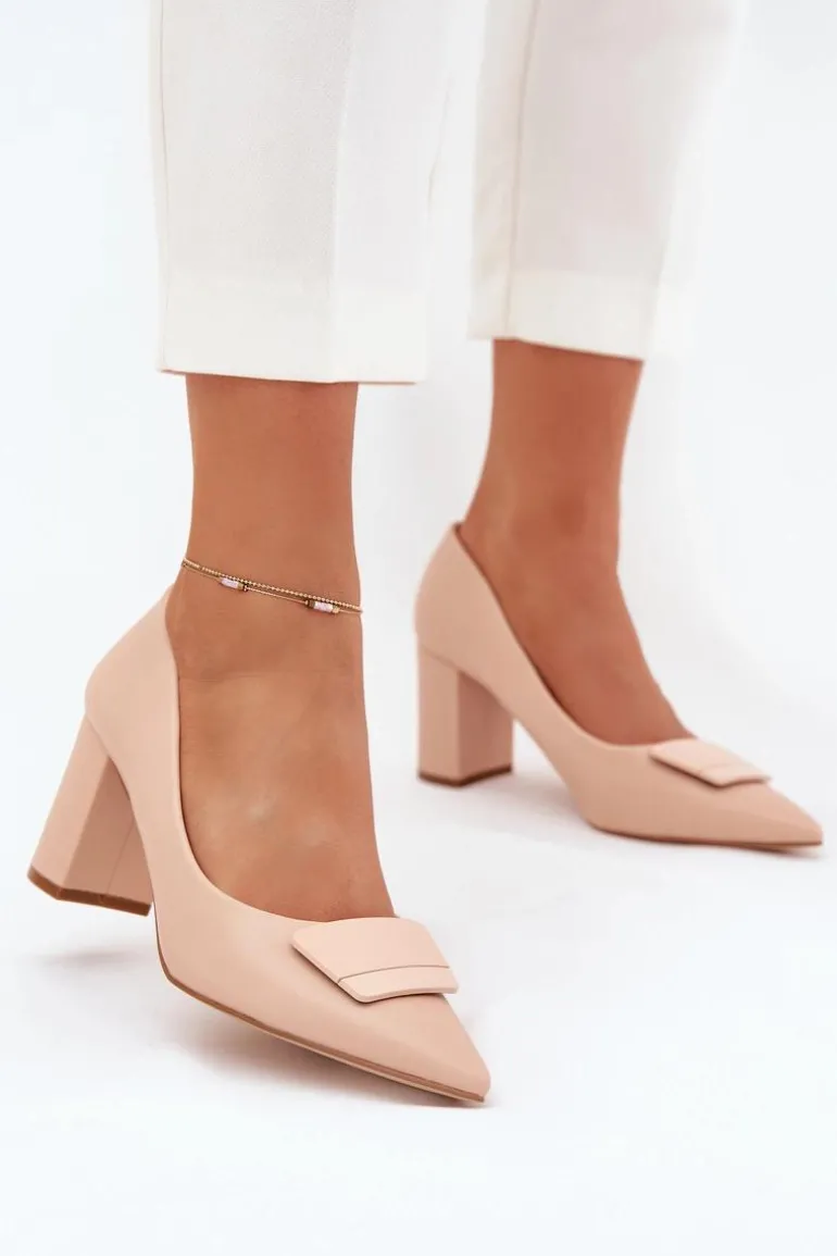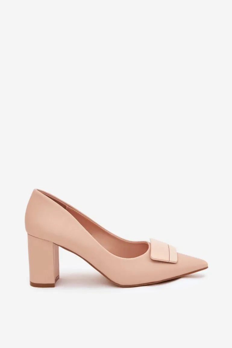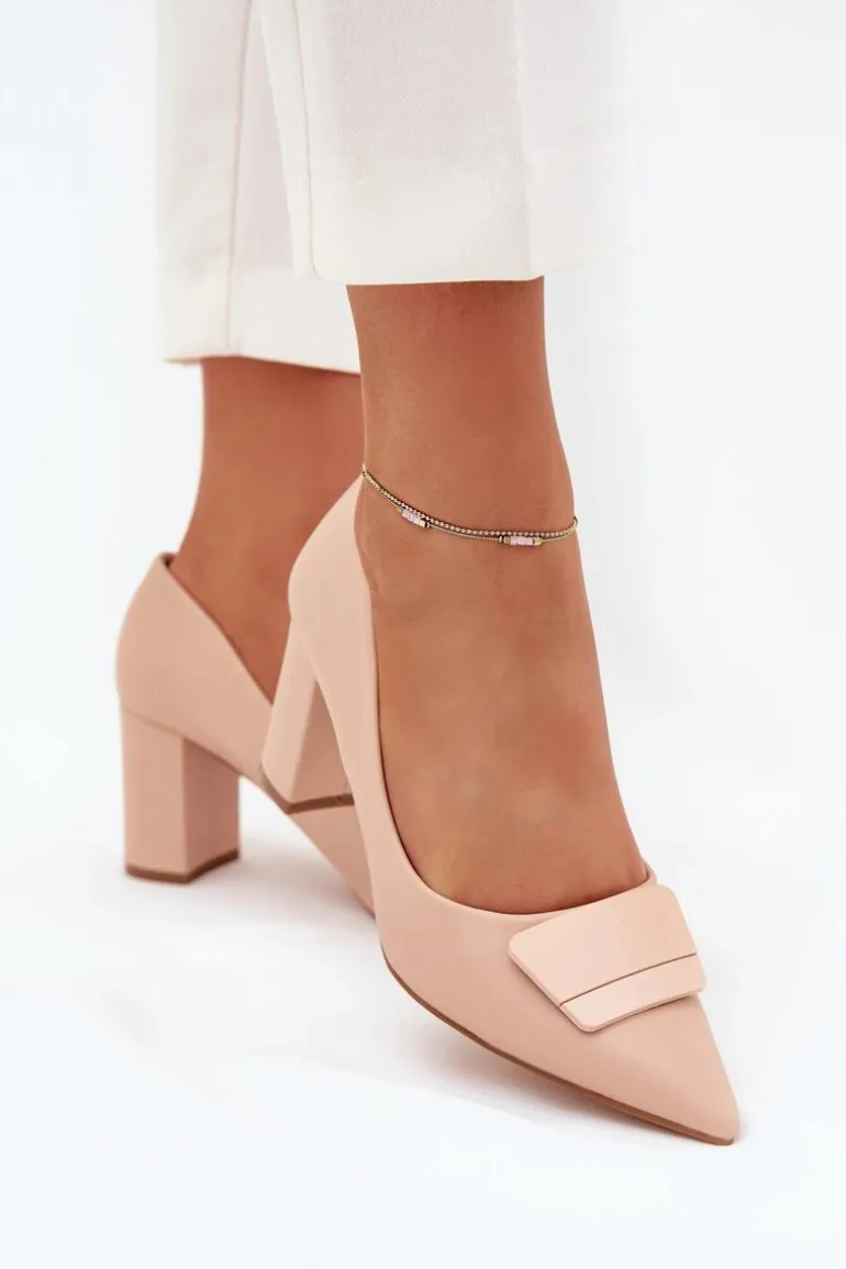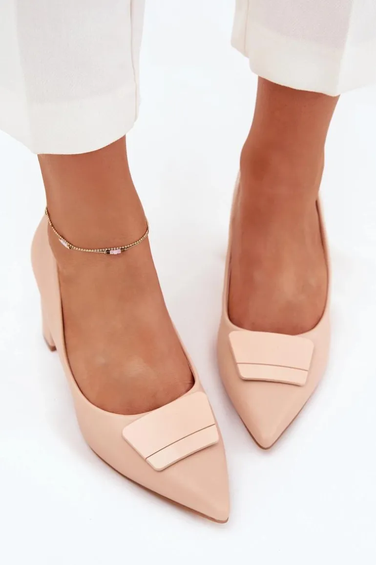 Czółenka Na Słupku Z Ozdobą Beżowe Celira