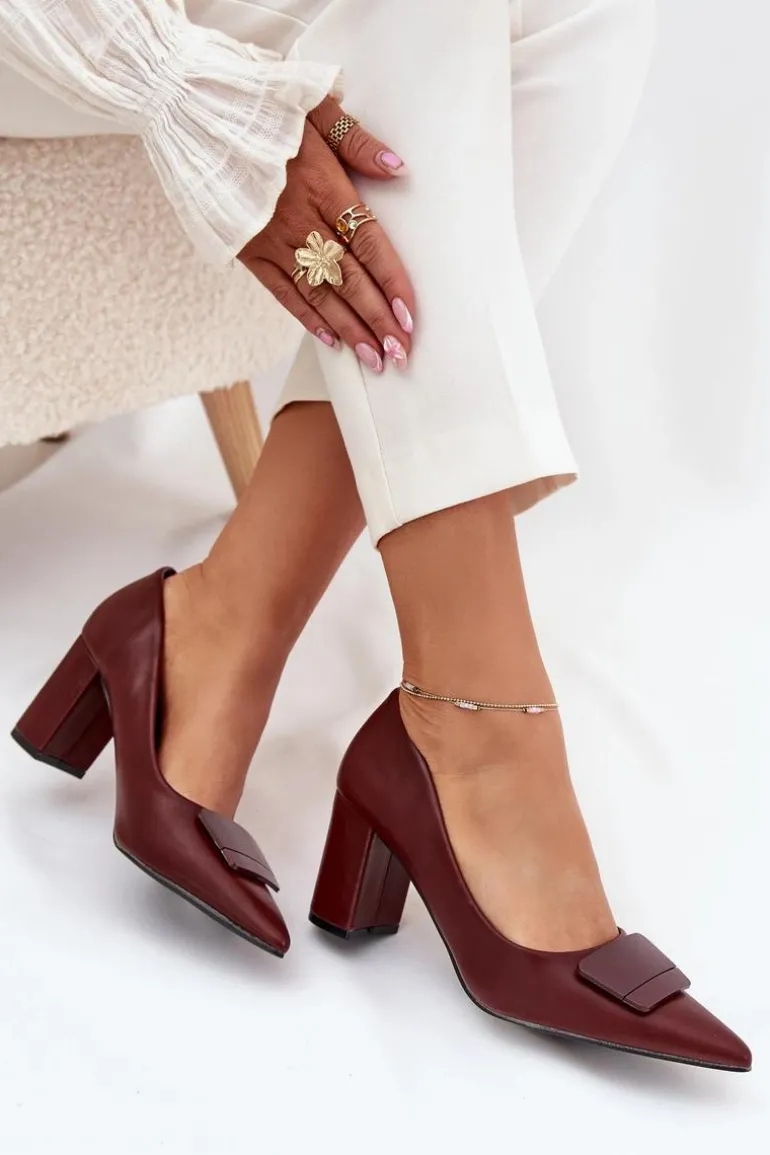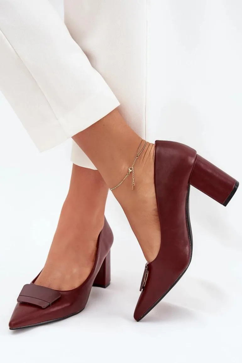Czółenka damskie z eko skóry, osadzone na obcasie w formie słupka, łączą elegancję z wygodą. Szpiczaste noski wysmuklają nogi, a ozdobny detal z przodu dodaje im subtelnego uroku. Elegancki fason sprawia, że pasują do formalnych stylizacji, doskonale komponując się z sukienkami, spódnicami czy eleganckimi spodniami. Przy wyborze rozmiaru prosimy kierować się tabelą rozmiarów