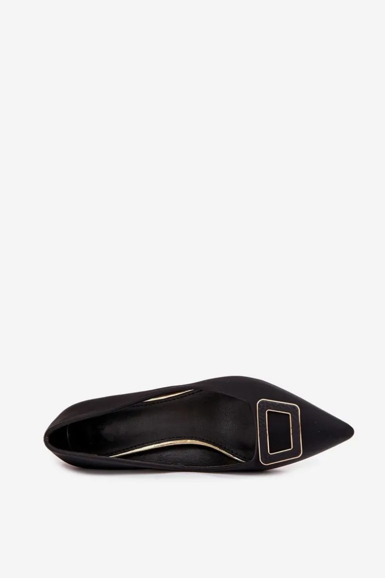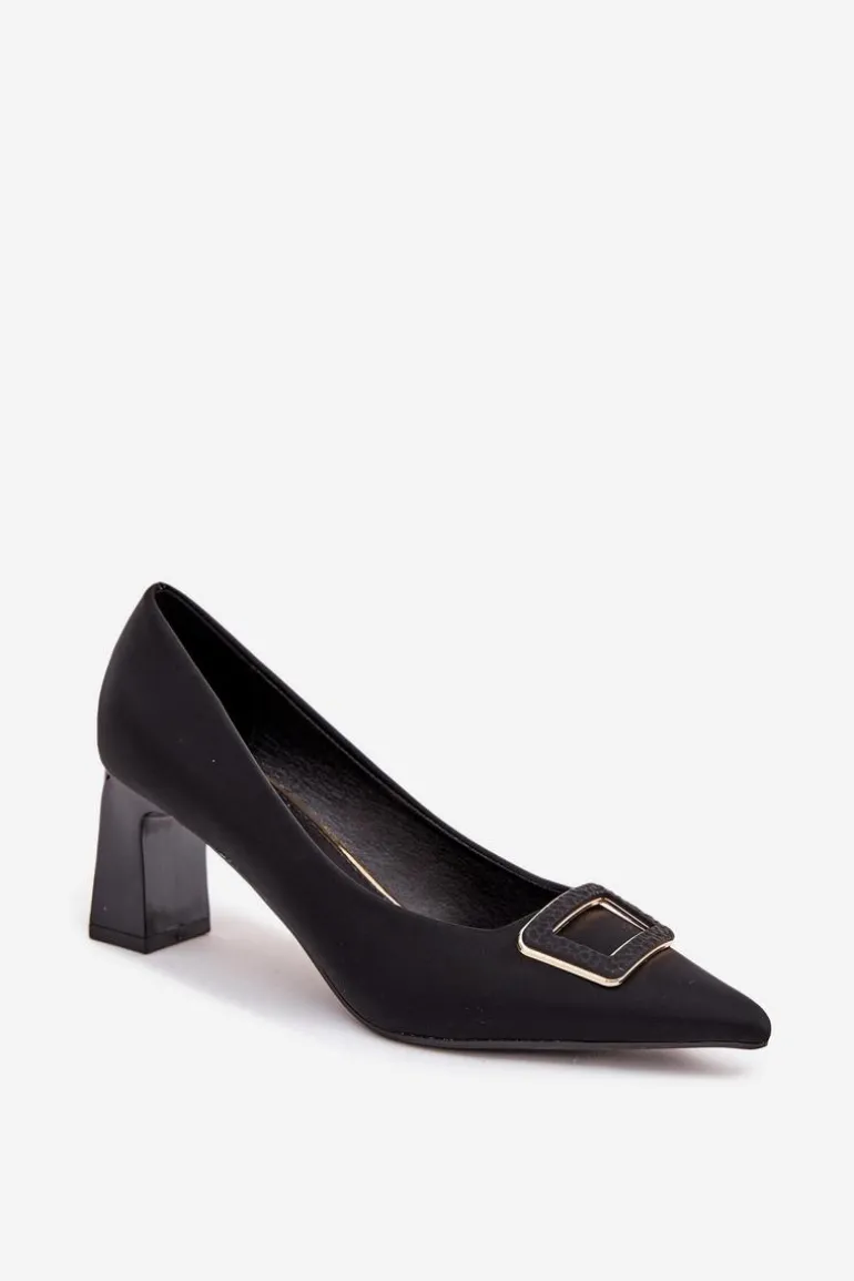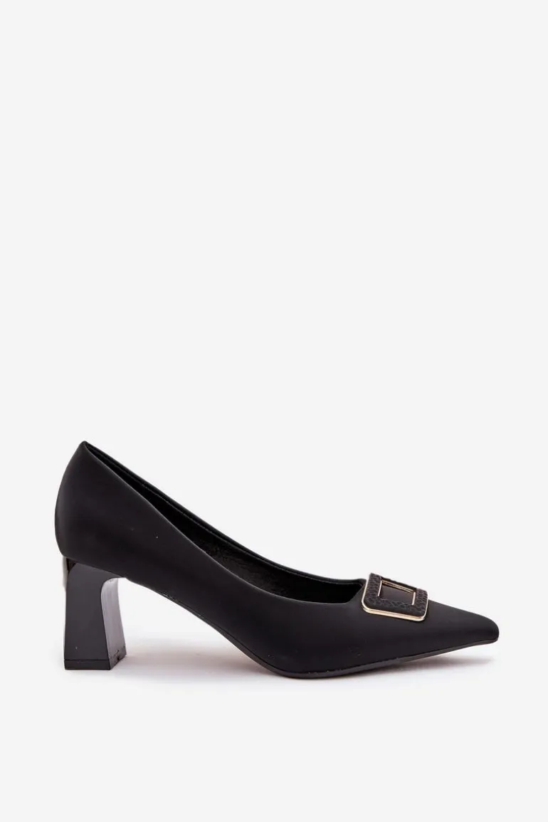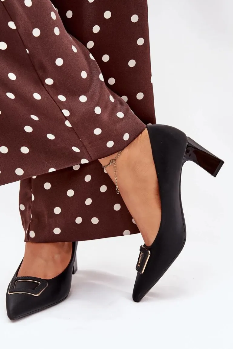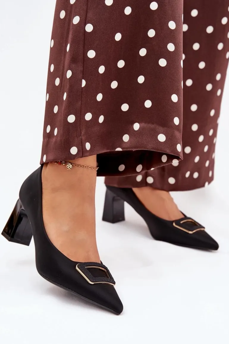 Czółenka Na Słupku Z Ozdobną Klamrą Czarne Seriva