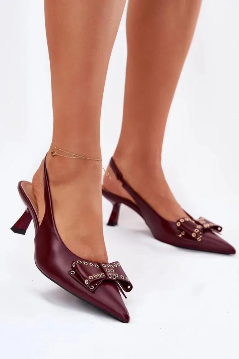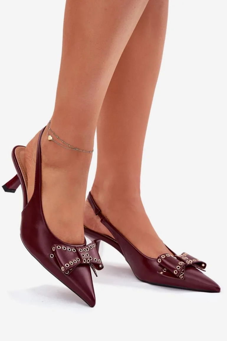 Czółenka Na Szpilce Z Kokardą Bordowe Folesca