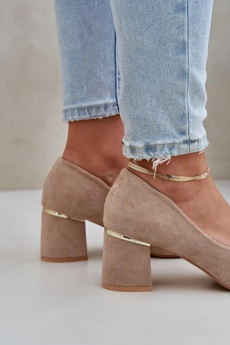 Czółenka z eko zamszu to klasyczna propozycja na każdą okazję. Zaokrąglone noski zapewniają komfort noszenia, a obcas słupek dodaje stabilności. Eko skórzana, miękka wkładka gwarantuje wygodę przez cały dzień. Te czółenka doskonale pasują do zarówno codziennych, jak i bardziej formalnych stylizacji. Przy wyborze rozmiaru prosimy sugerować się tabelą rozmiarów.