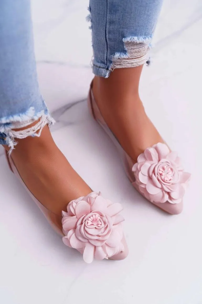 Damskie Balerinki Lu Boo Różowe Z Kwiatem Transparentne Dairin