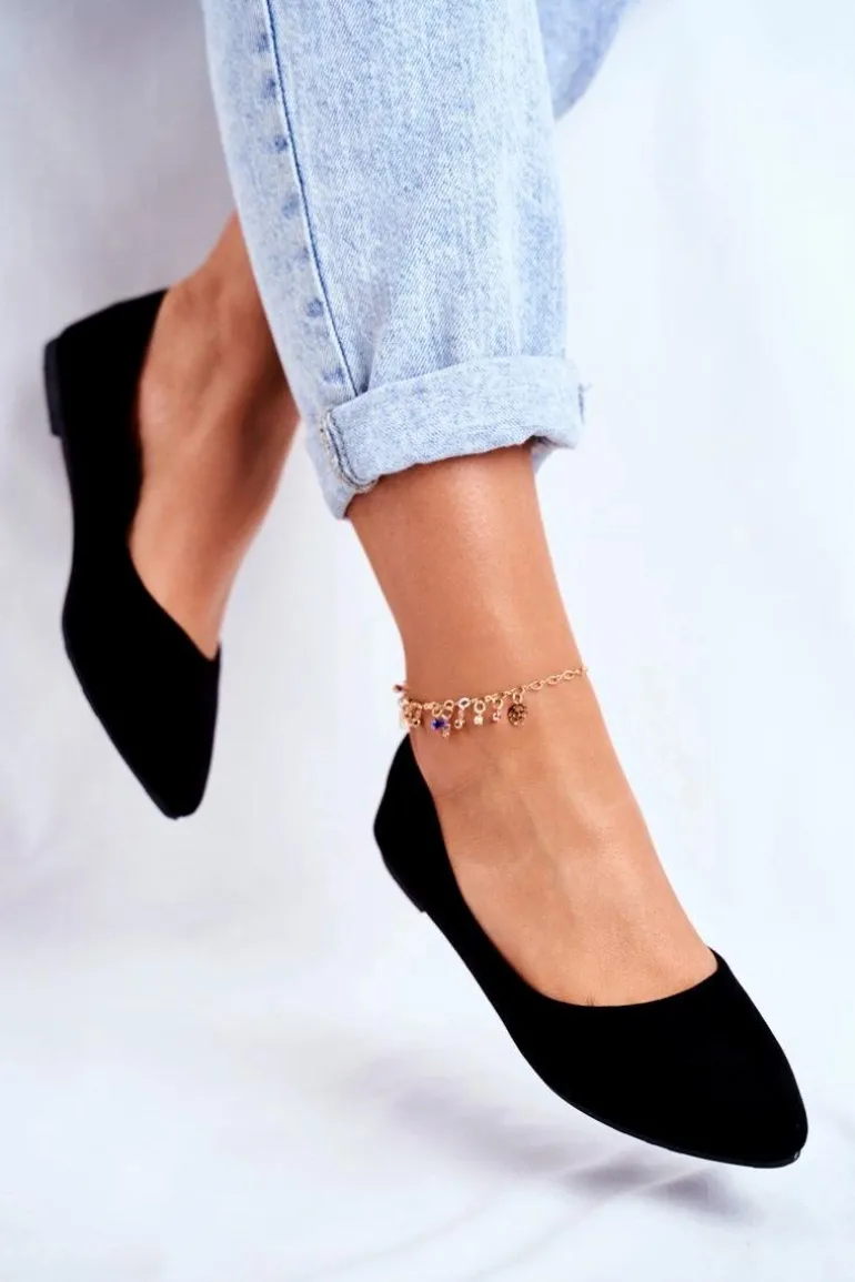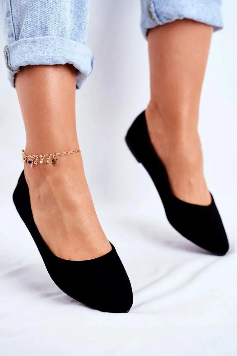 Damskie Balerinki Zamsz Czarne Bueno