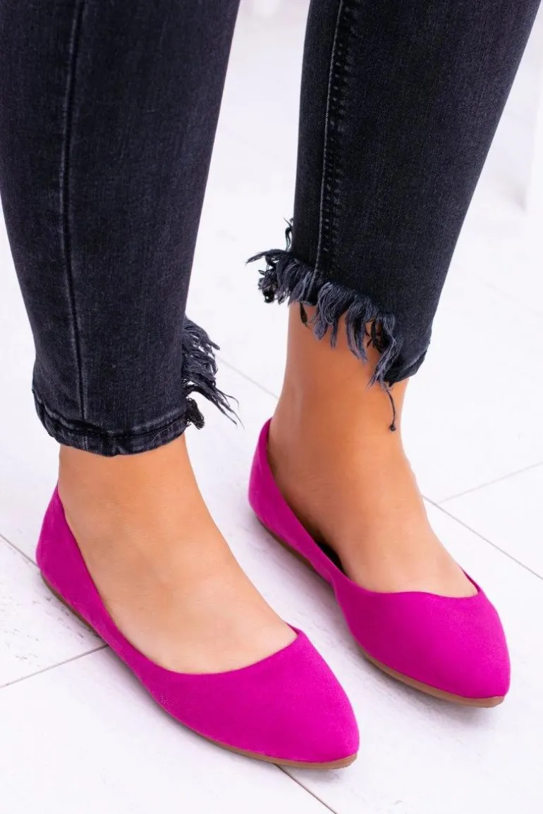 Damskie Balerinki Zamsz Fuksja Dermeno