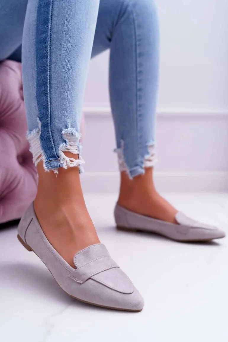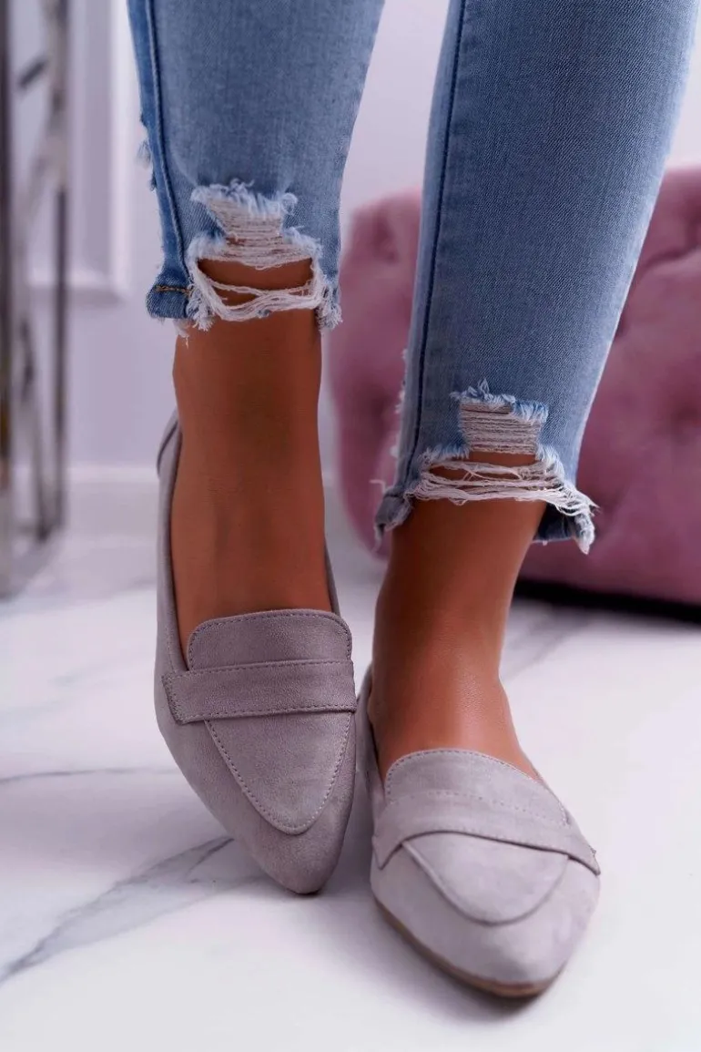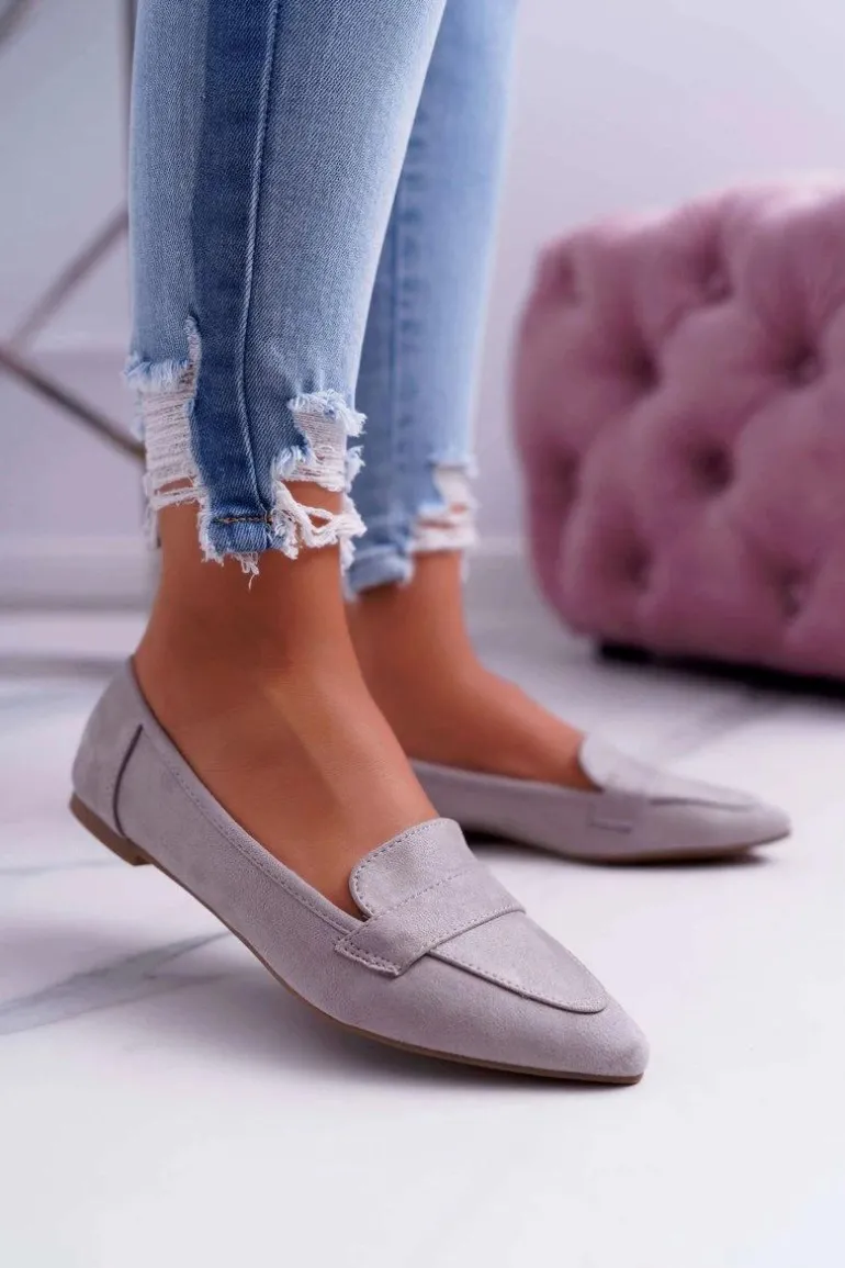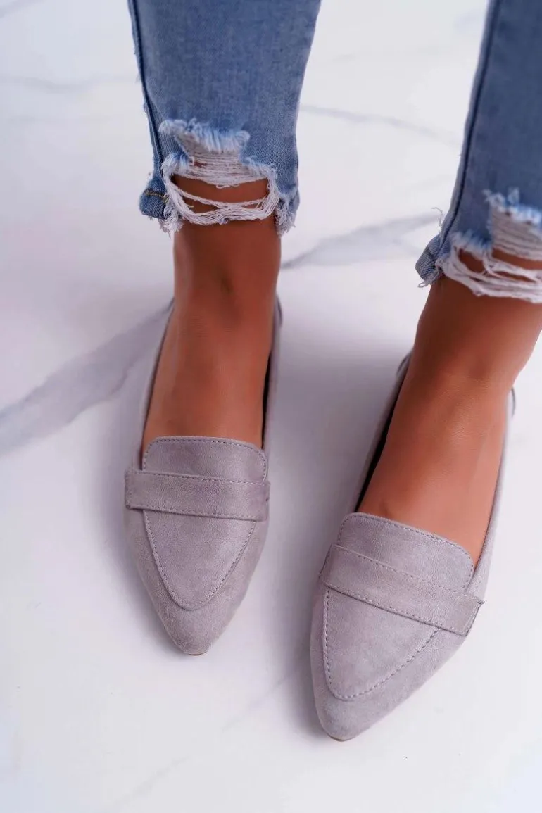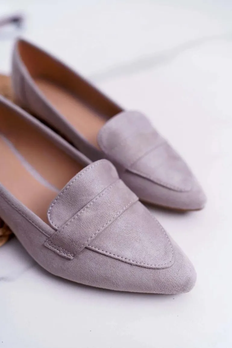Damskie Balerinki Zamszowe Lordsy Szare Gretar