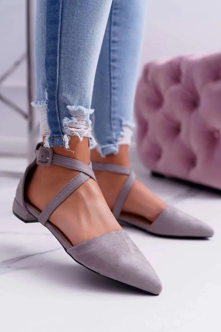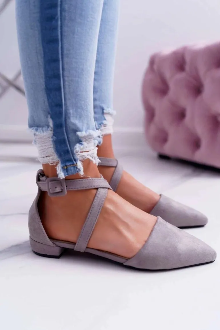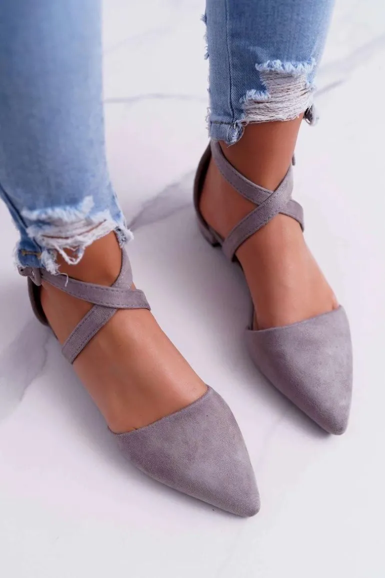 Damskie Baleriny Szare Zamszowe W Szpic Medena