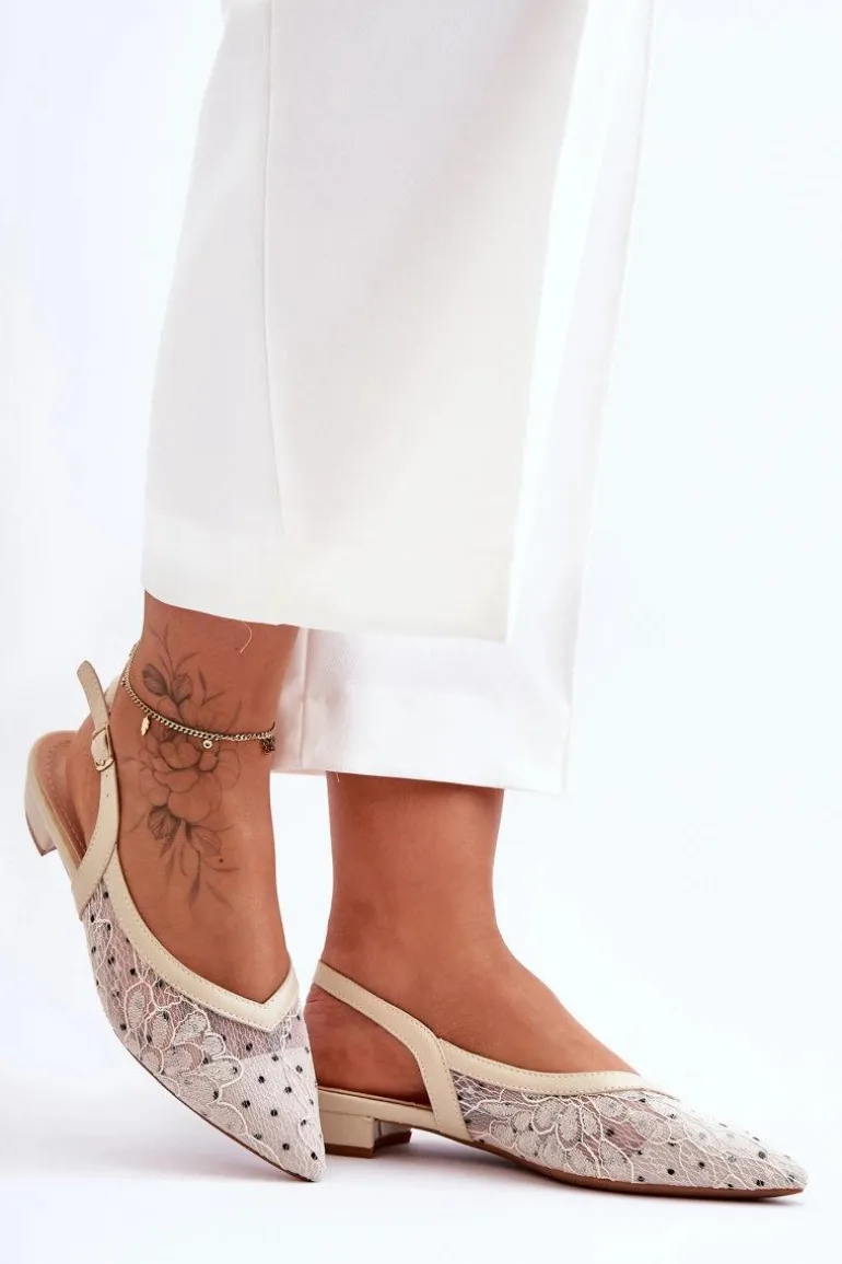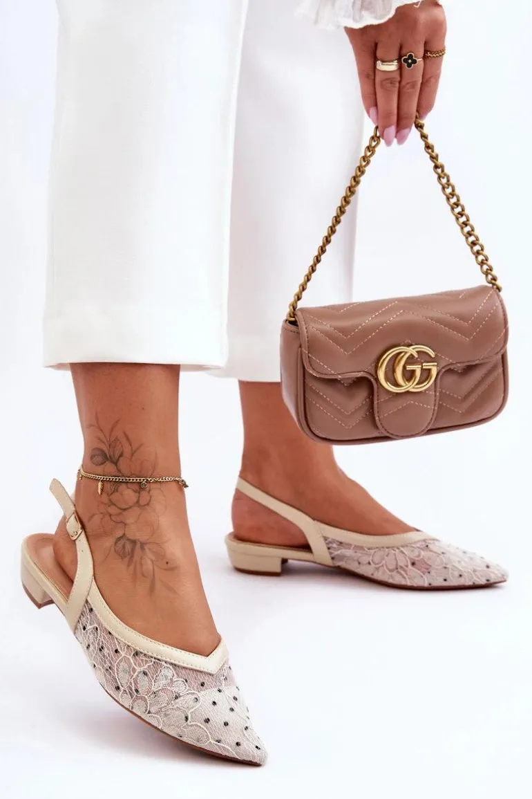 Eleganckie baleriny z odkrytą piętą i noskiem w szpic na pewno przypadną Ci do gustu! Zostały wykonane z połączenia tworzywa i eko skóry. Posiadają zapinanie na regulowany pasek ze sprzączką. Miękka, eko skórzana wkładka zapewni komfort podczas użytkowania. Baleriny posiadają płaski obcas, co sprawia, że będziesz czuć się w nich stabilnie.Podczas wyboru rozmiaru prosimy sugerować się tabelą rozmiarów.