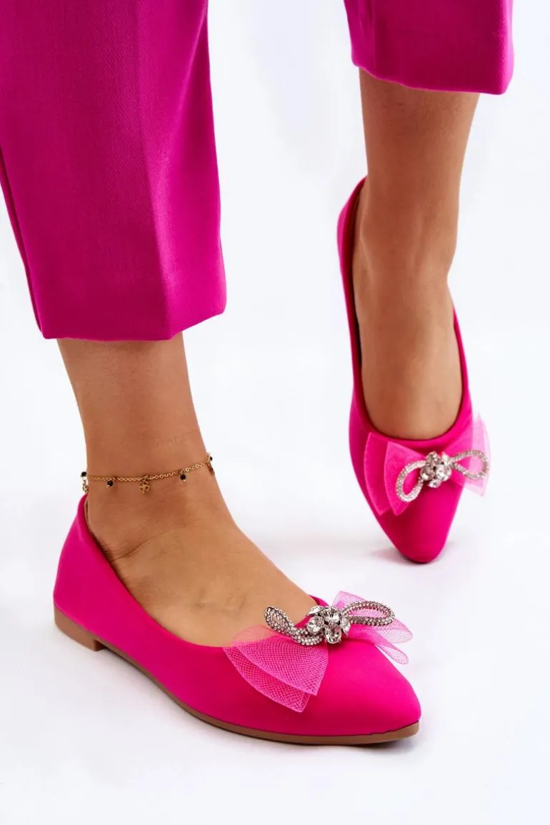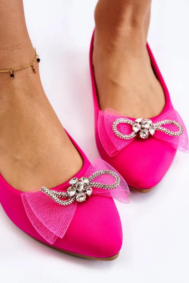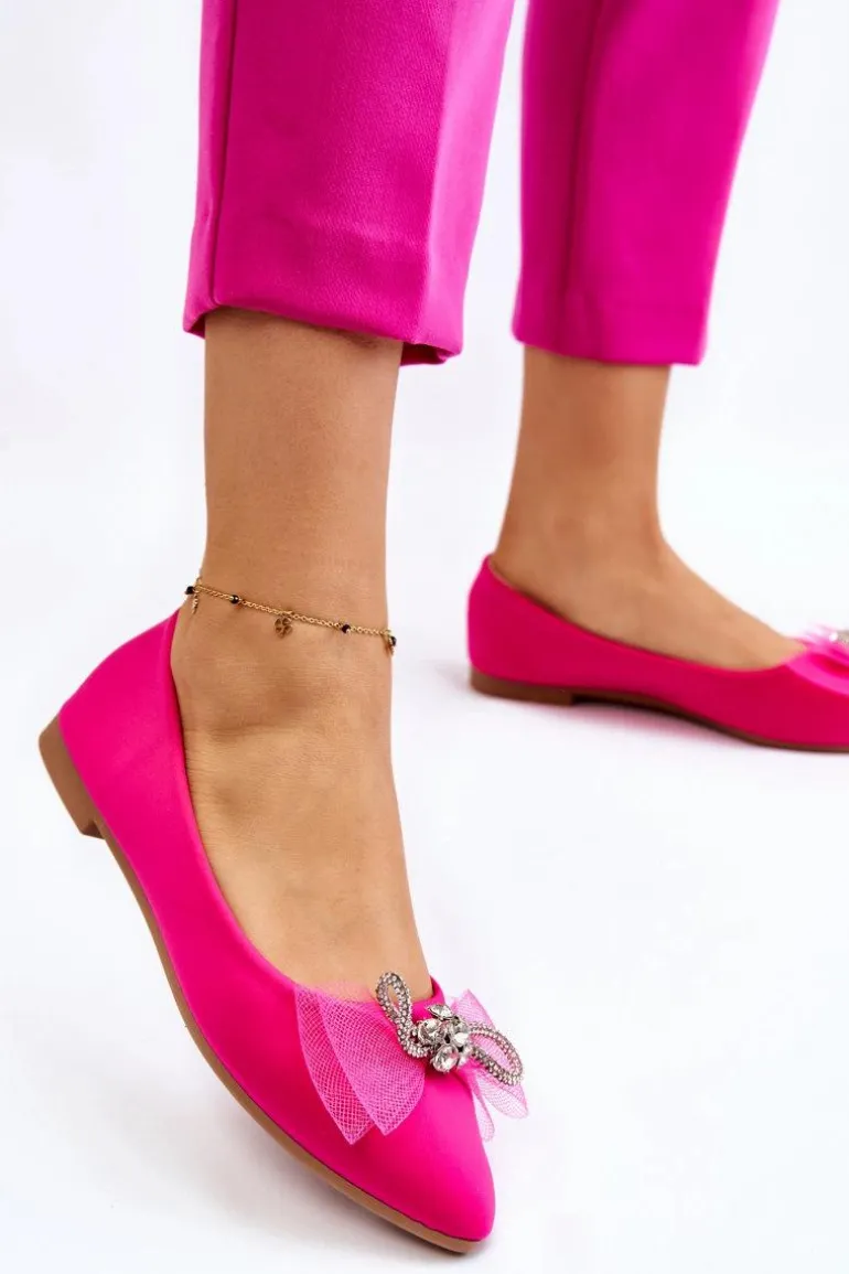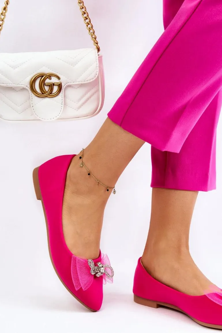 Damskie Baleriny W Szpic Z Ozdobną Kokardą Fuksja Luminous