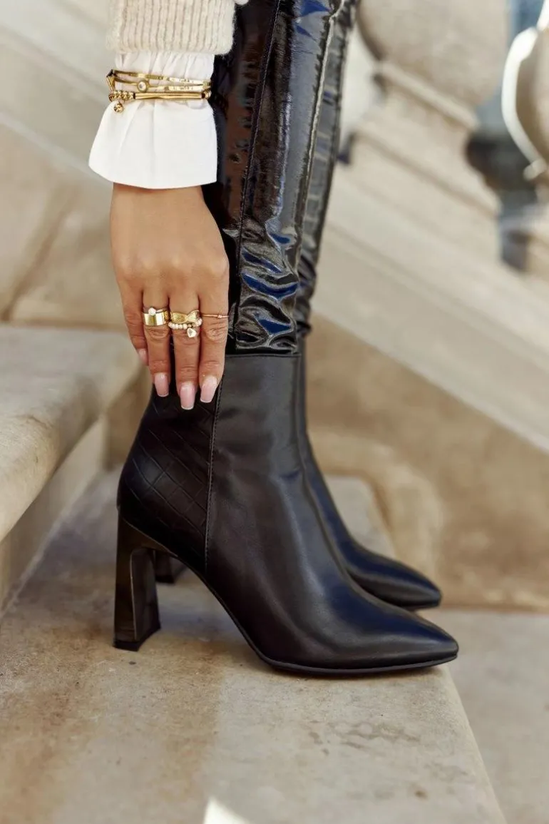 Wspaniałe botki na słupku. Wykonane są ze skóry ekologicznej o fakturze krokodyla. Stylowy słupek z oryginalnym designem. Nie daj się zaskoczyć i przygotuj się na chłodniejsze dni!