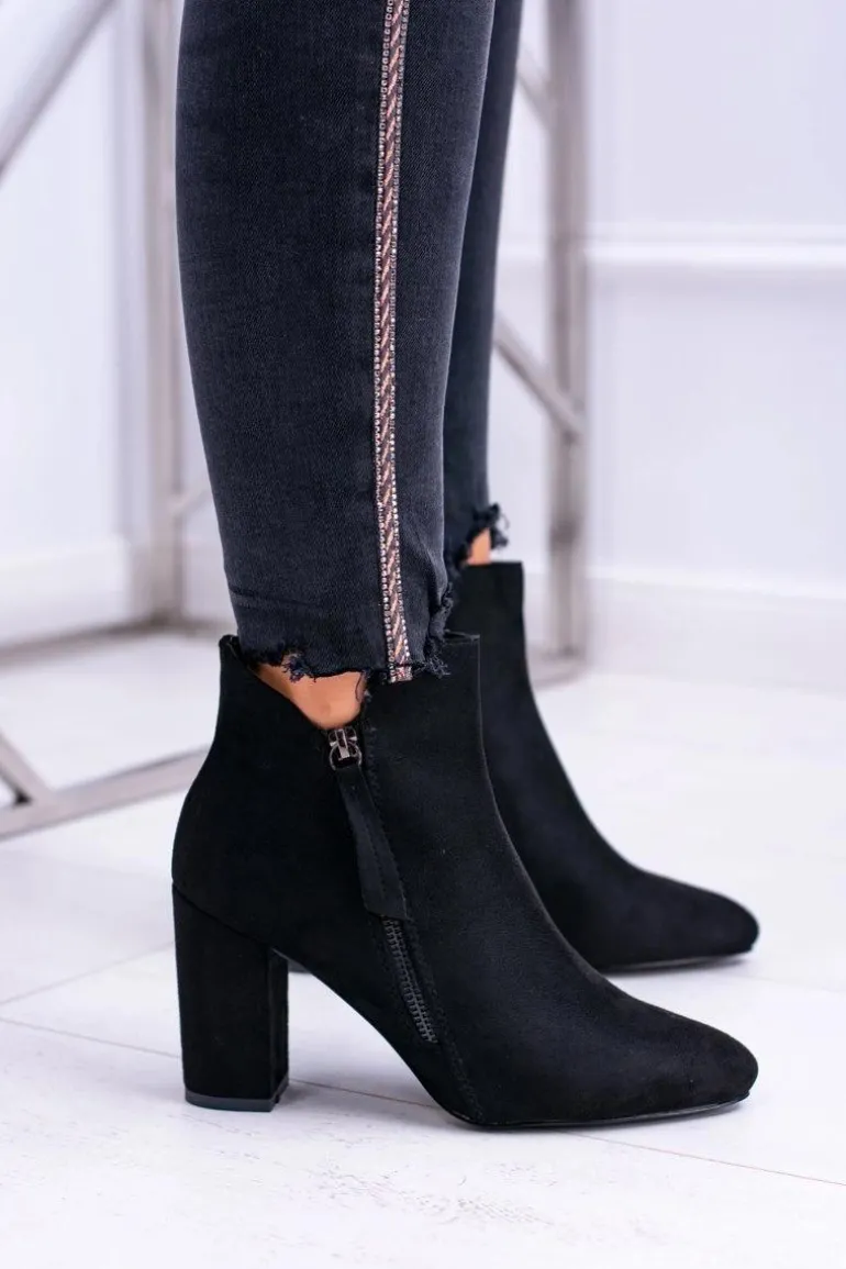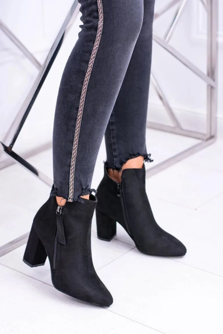Damskie Botki Czarne na Słupku Zamszowe Egida