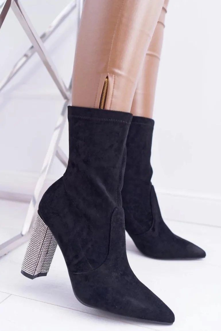 Damskie Botki Czarne Na Słupku Zamszowe Hendo