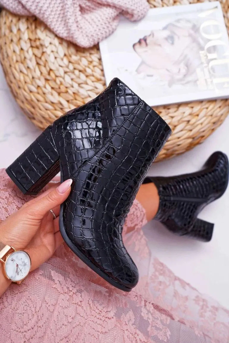 Damskie Botki Czarne Skóra Krokodyla Crocodil