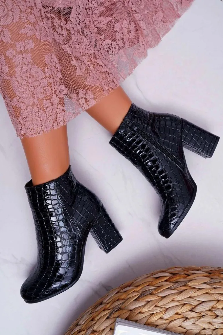 Mamy dla Was absolutny hit! Wspaniałe botki na słupku. Wykonane są ze skóry ekologicznej, z pewnością będą pasować do wielu jesiennych oraz zimowych stylizacji. O nasz komfort zadba ocieplone delikatnym kocem obuwniczym wnętrze. Nie daj się zaskoczyć i przygotuj się na chłodniejsze dni! Wierzch o fakturze skóry krokodyla!