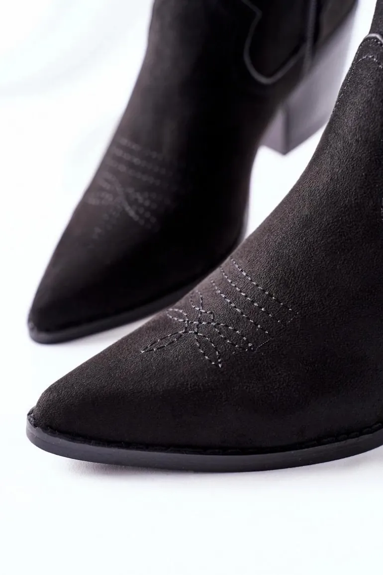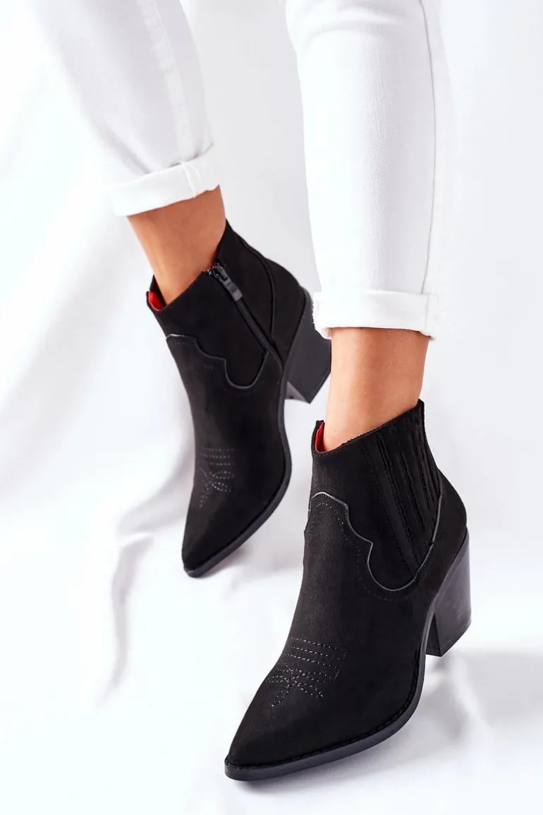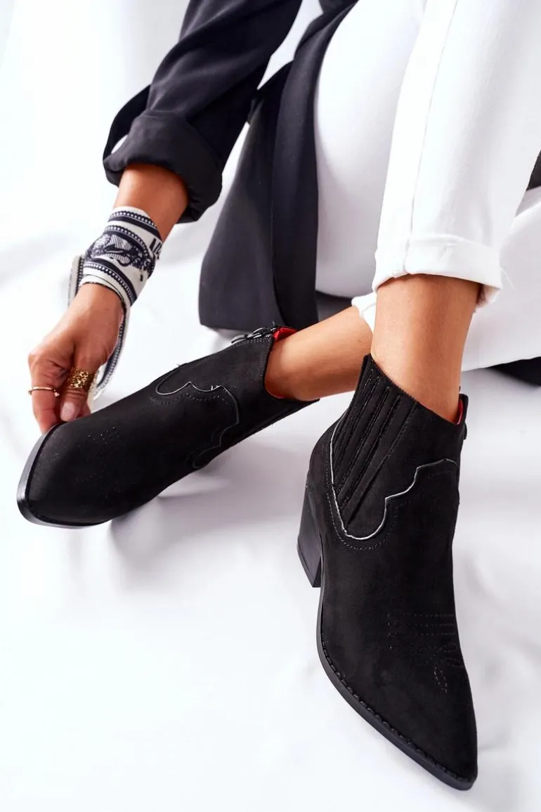 Niezwykły i stylowy model botków! Wykonane z ekologicznego zamszu. Design kowbojski nadaje oryginalności. Zapinane na zamek.