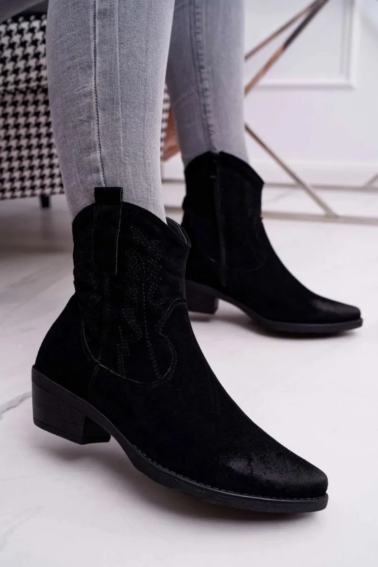 Damskie Botki Kowbojki Zamszowe Czarne Ferders
