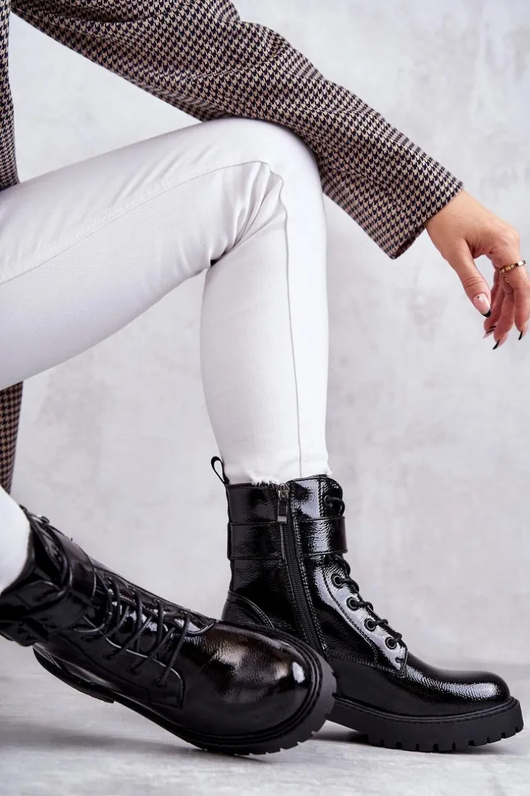 Modne botki damskie zostały wykonane z eko skóry. Posiadają suwak na boku cholewki, sznurowanie oraz klamrę z regulowanym paskiem. W środku znajduje się ocieplenie w postaci koca obuwniczego. Buty dodatkowo posiadają usztywniany zapiętek. Świetny model na jesienne, chłodne dni! Koniecznie sprawdź także pozostałe modele botków dostępne na naszej stronie! Przy wyborze rozmiaru prosimy sugerować się tabelą rozmiarów.