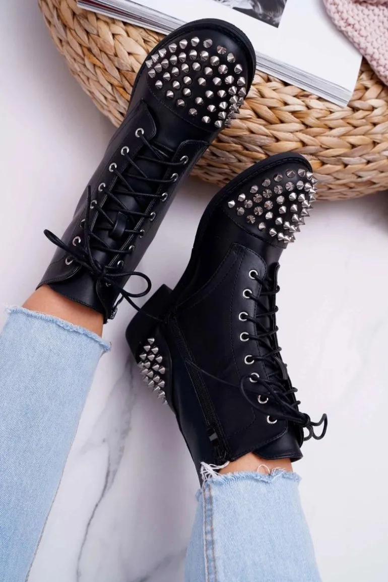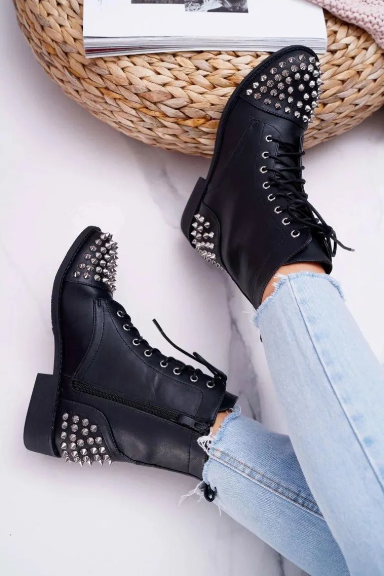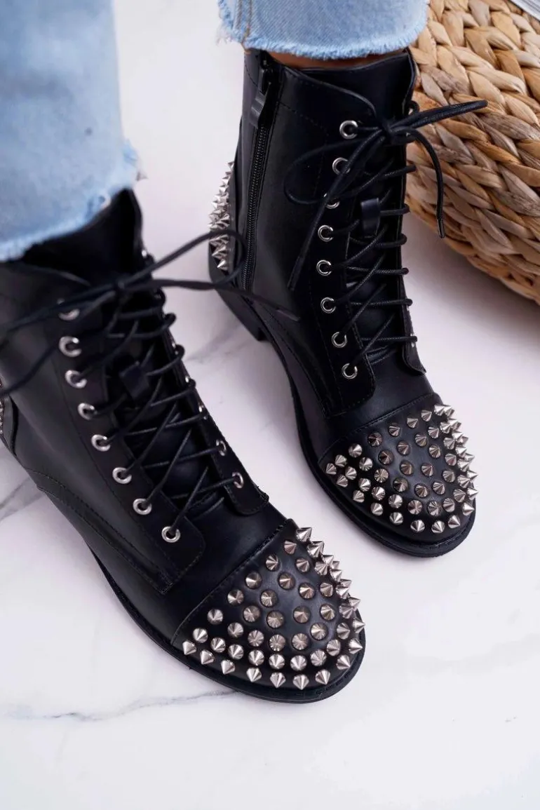Damskie Botki Lu Boo Czarne Workery z Ćwiekami Tension